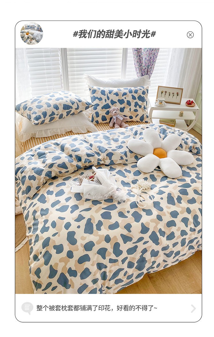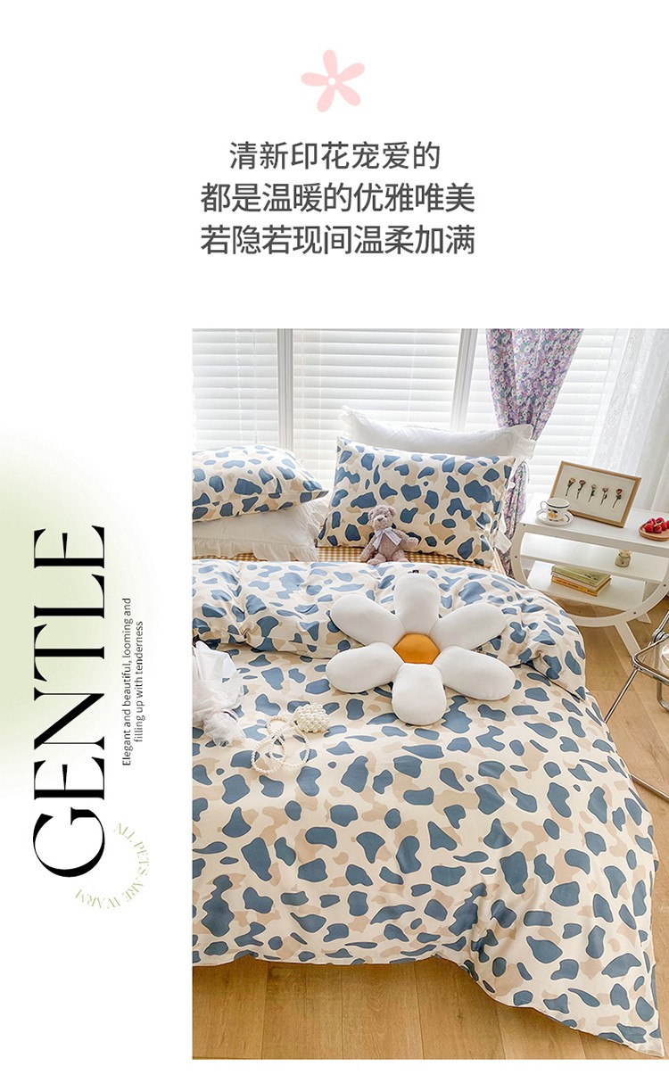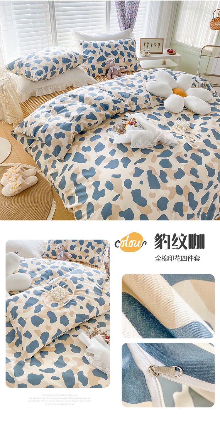 珺柔家纺 2022新款13372全棉印花四件套 豹纹咖