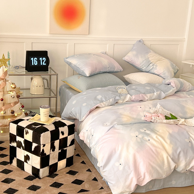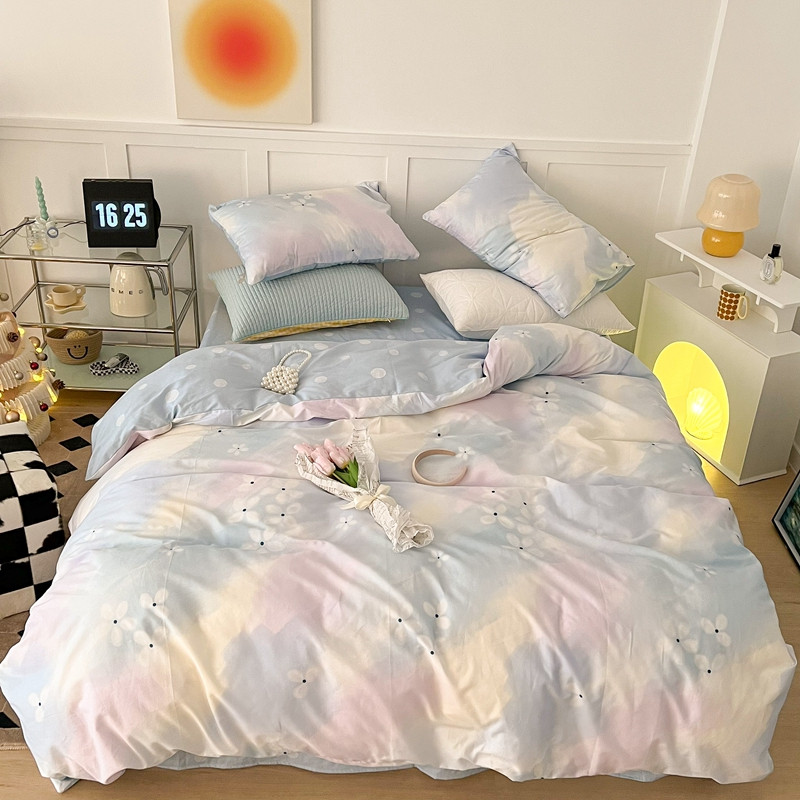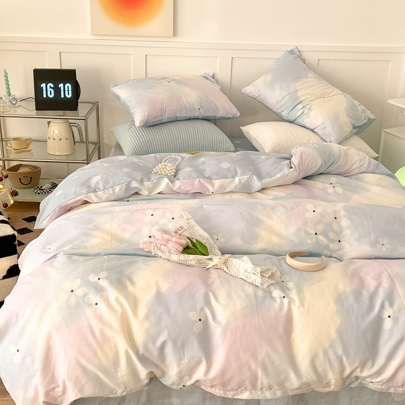 商品名称:昔可家纺 2022新款13372普通款四件套 晕染粉蓝