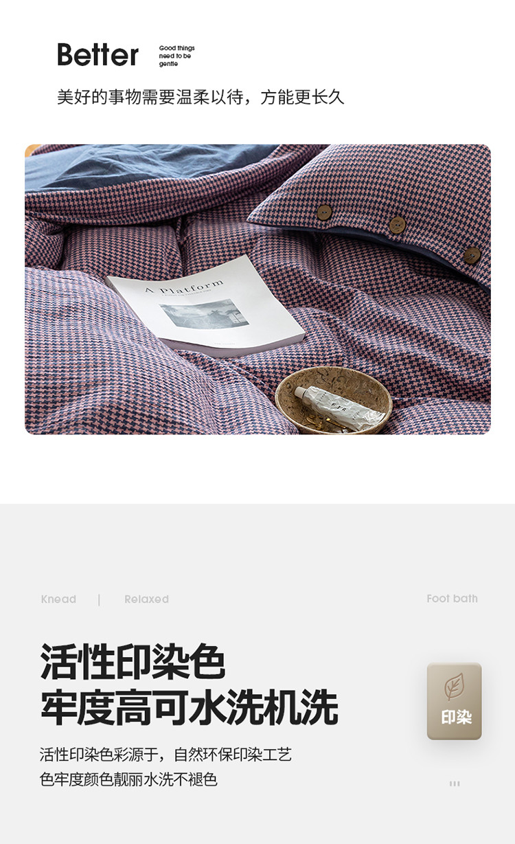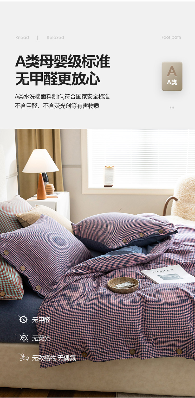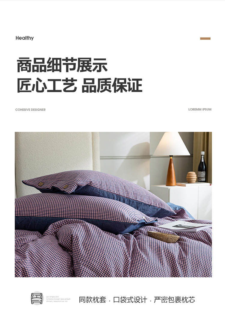 当前位置: 91家纺网 > 商品网购 > 床品套件 > 四件套 > 水洗棉四件套 > 寐眠 2022新款A类水洗棉提花千鸟格四件套 千鸟格紫