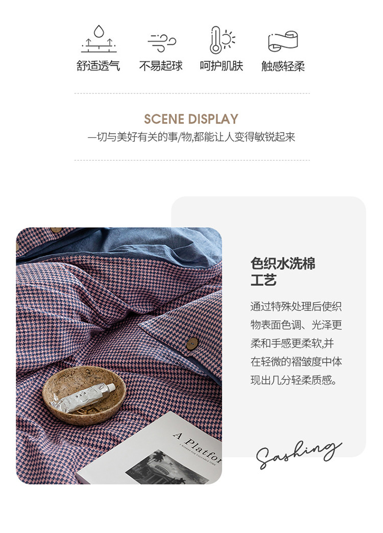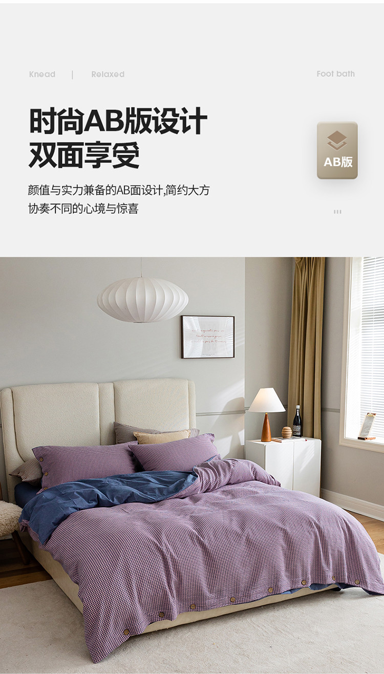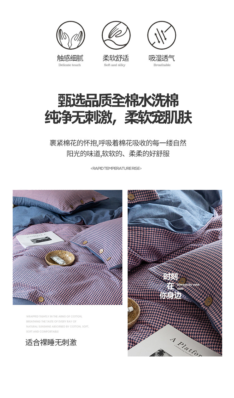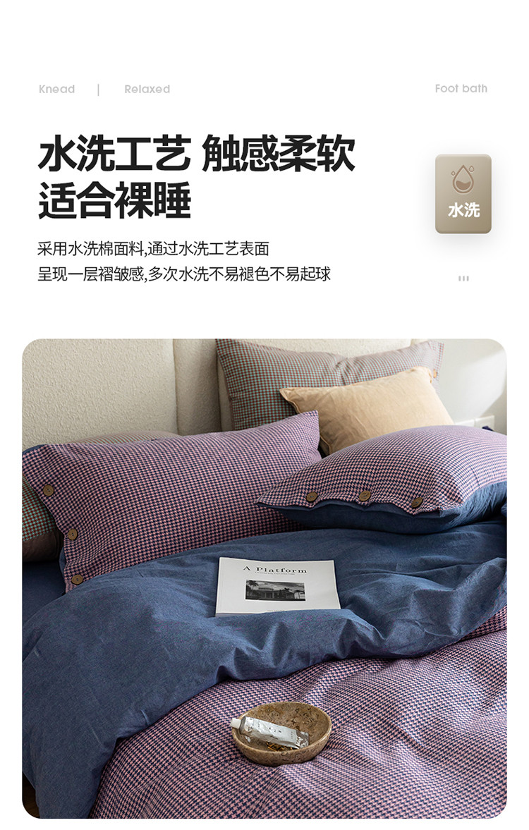当前位置: 91家纺网 > 商品网购 > 床品套件 > 四件套 > 水洗棉四件套 > 寐眠 2022新款A类水洗棉提花千鸟格四件套 千鸟格紫