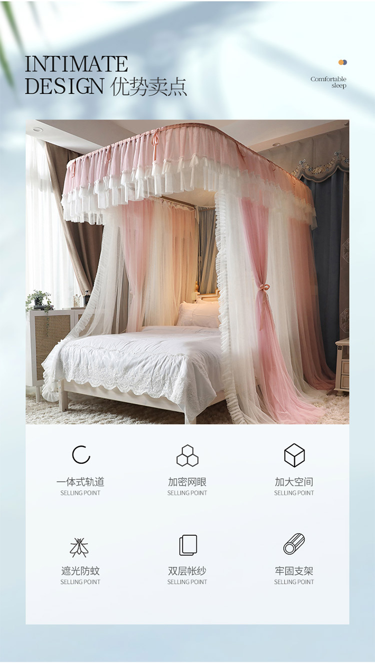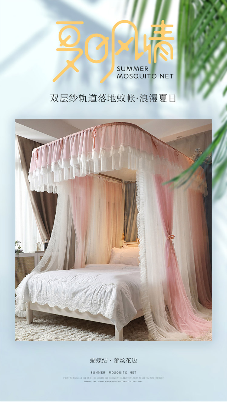 商品名称:富莱星蚊帐 2022新款双层纱导轨落地蚊帐 樱花粉