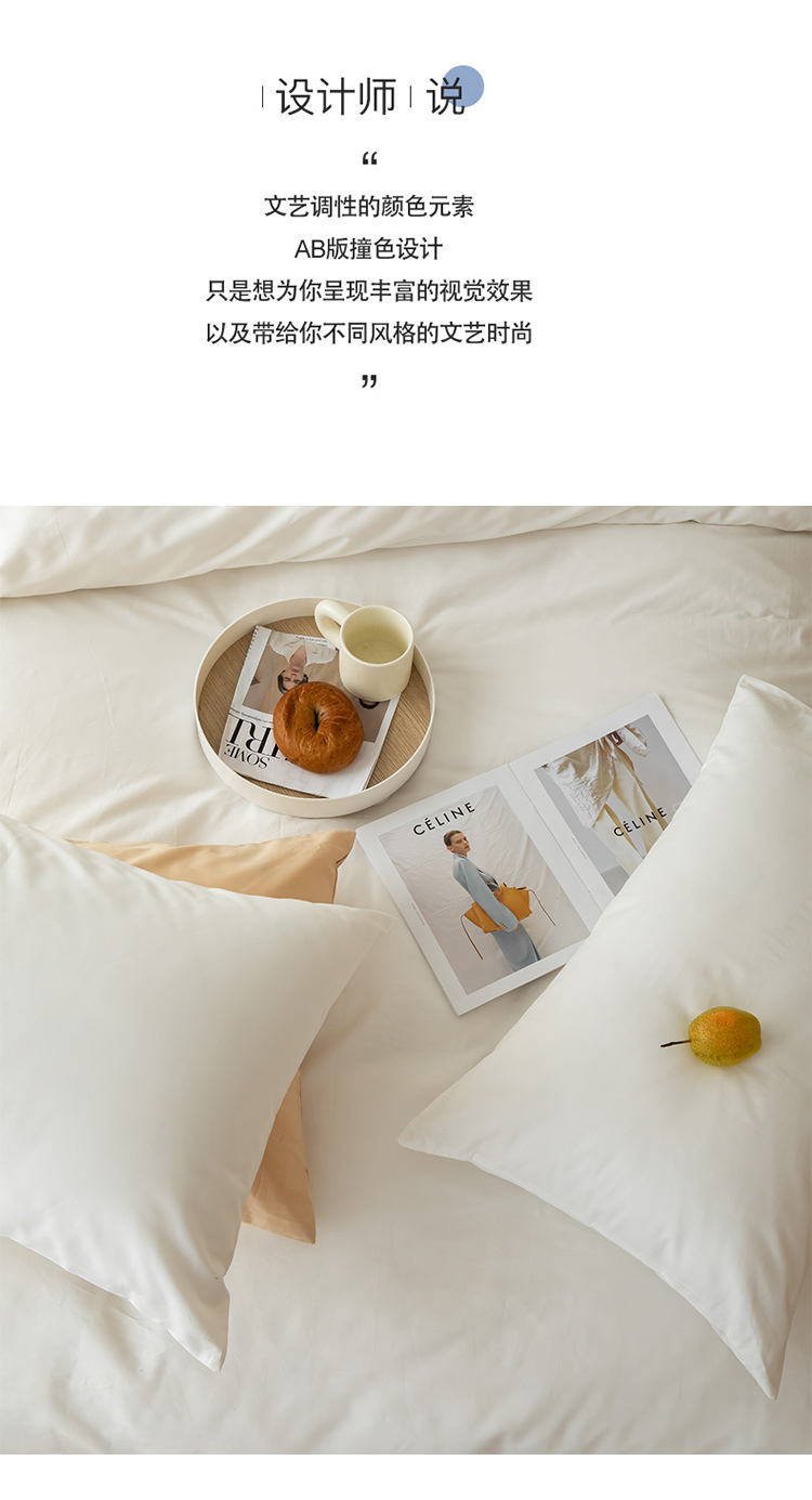 绫韵 2022新款13374全棉素色双拼枕套48*74莹白