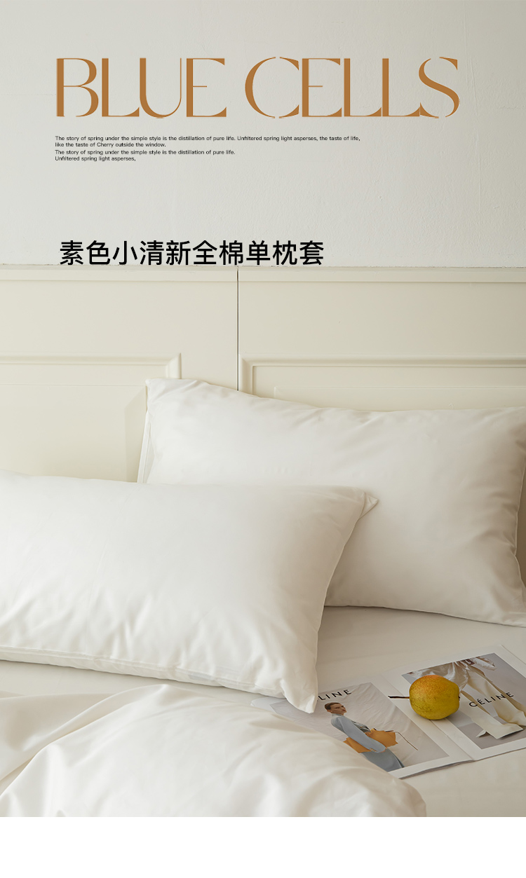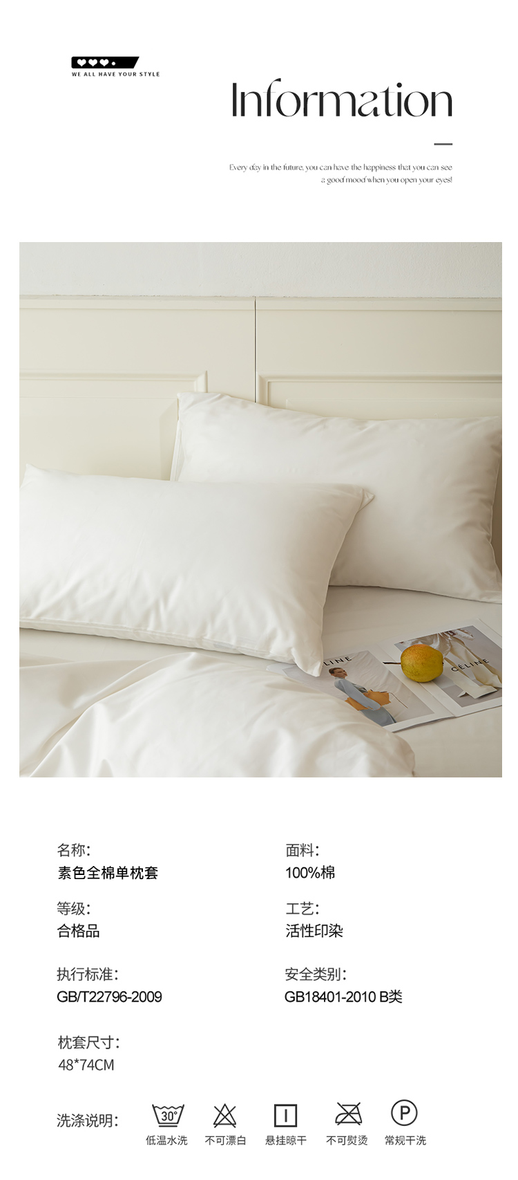 商品名称:绫韵 2022新款13374全棉素色双拼枕套48*74莹白