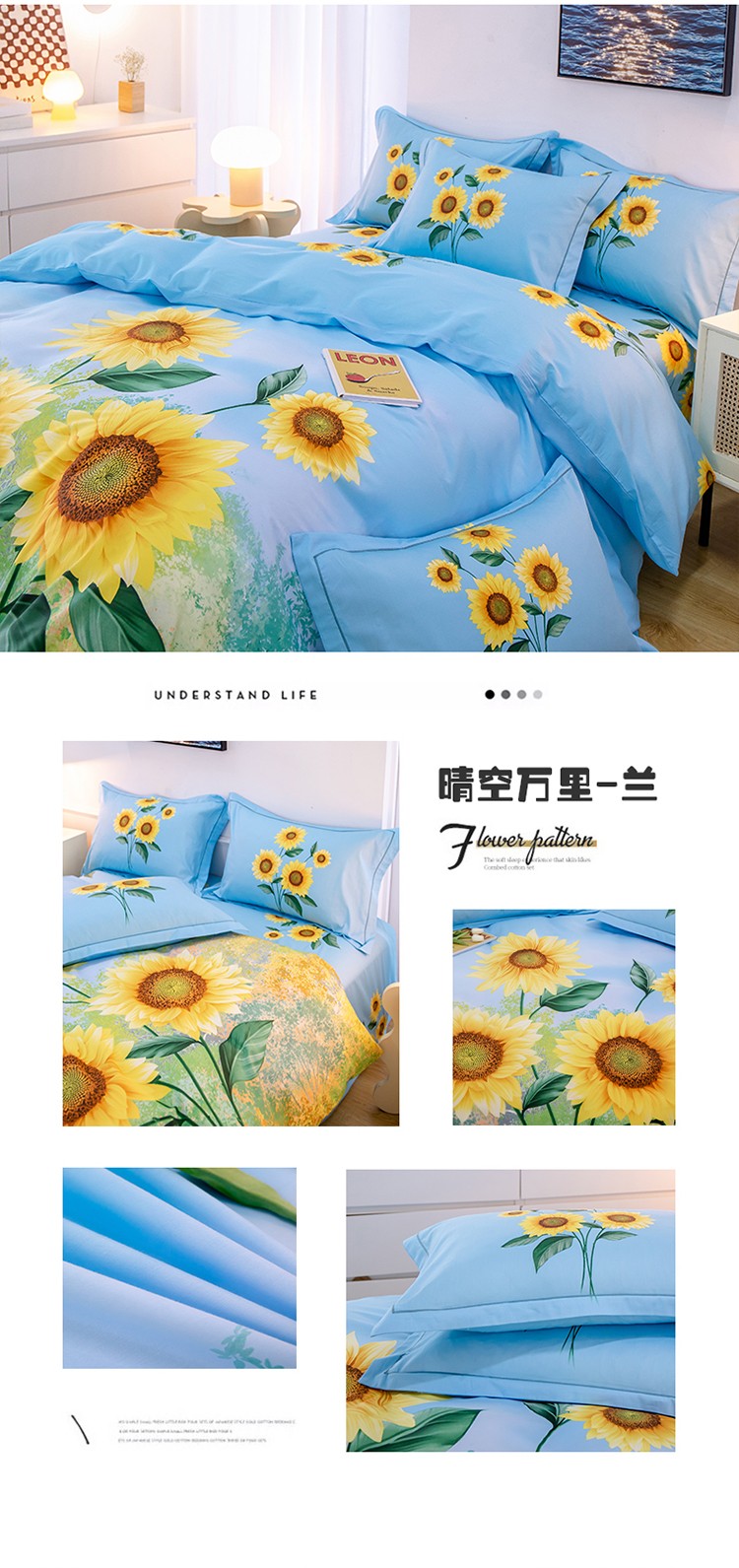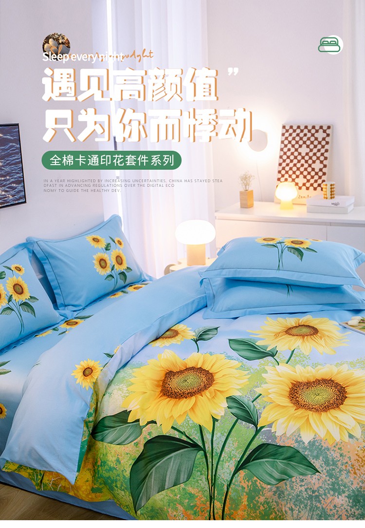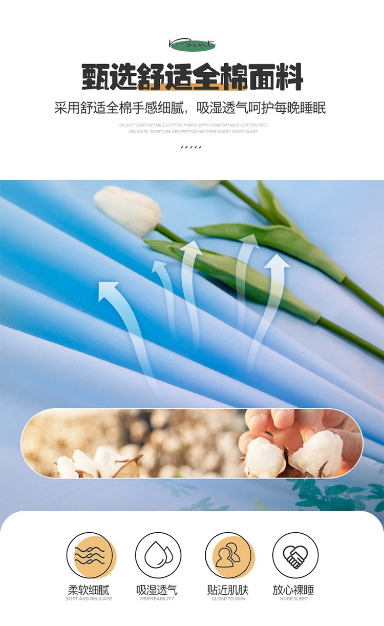 商品名称:雲归梦 2022新款全棉大版四件套 卡通花型 晴空万里-兰