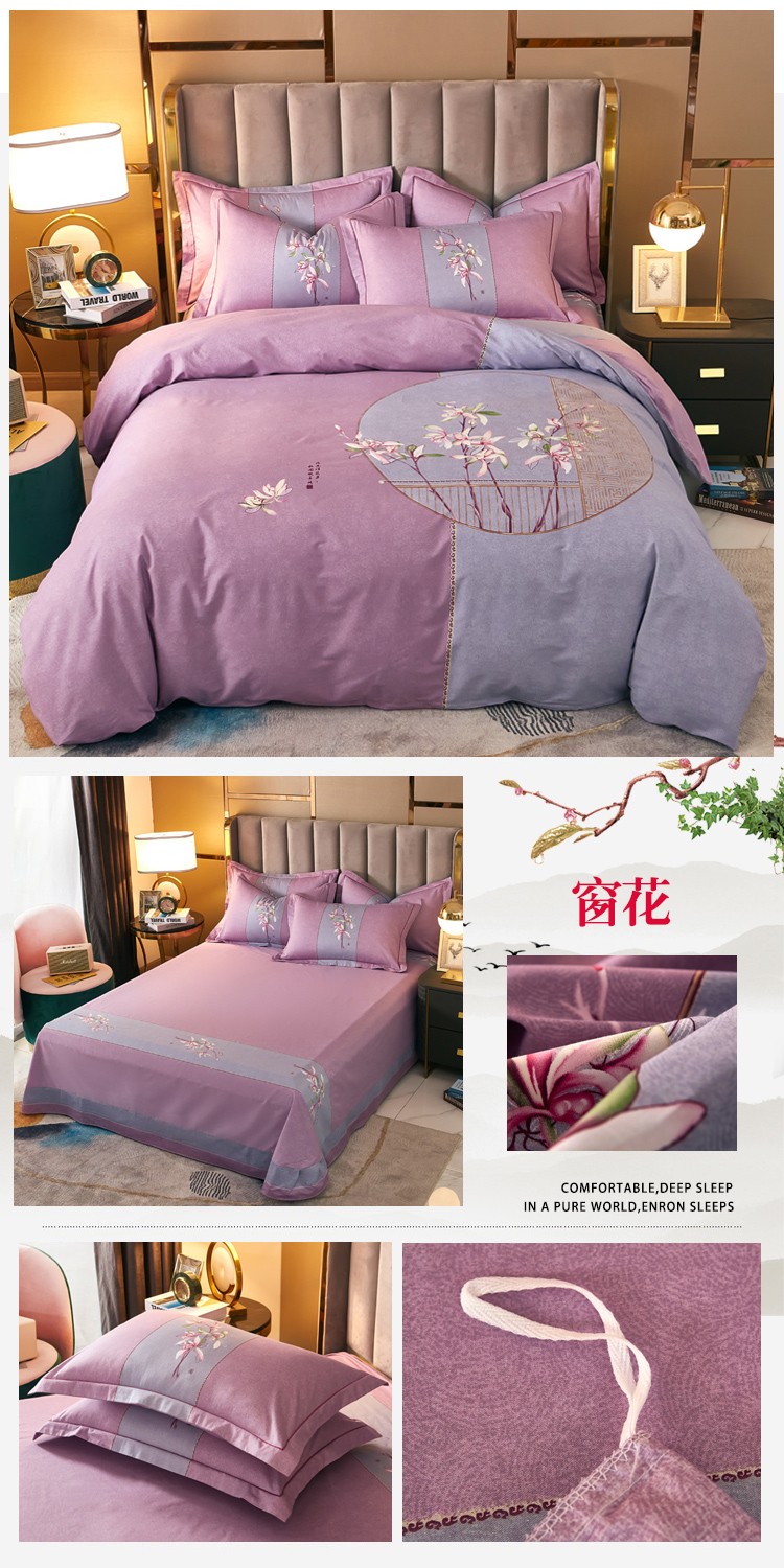 (总)雲归梦 2021新款全棉生态磨毛刺绣四件套,慕思-橙色,慕思-粉紫,慕思-灰,慕思-米黄,慕思-青绿,慕思-天蓝