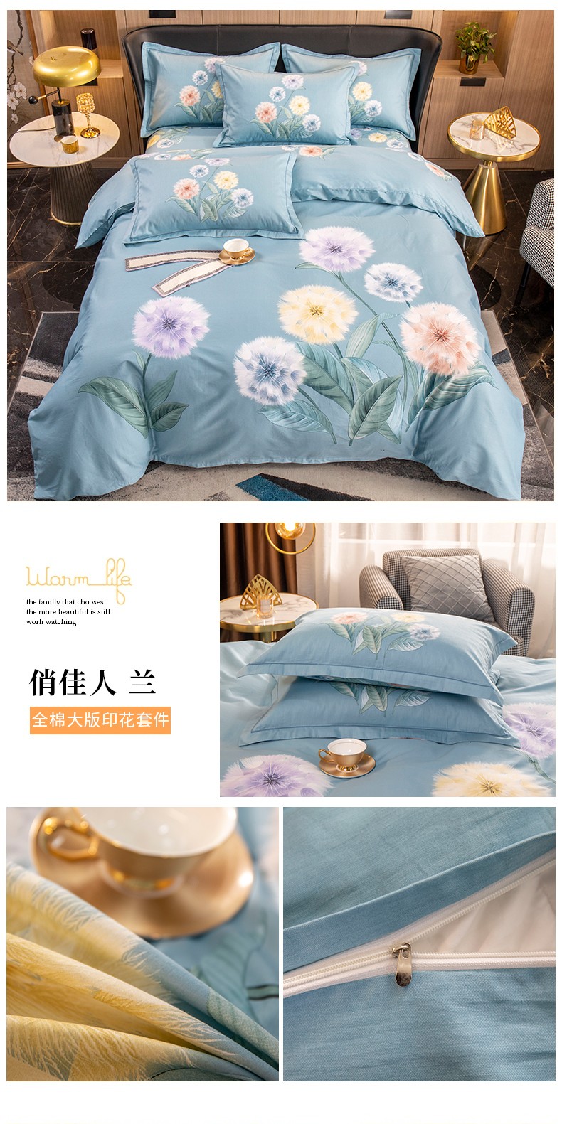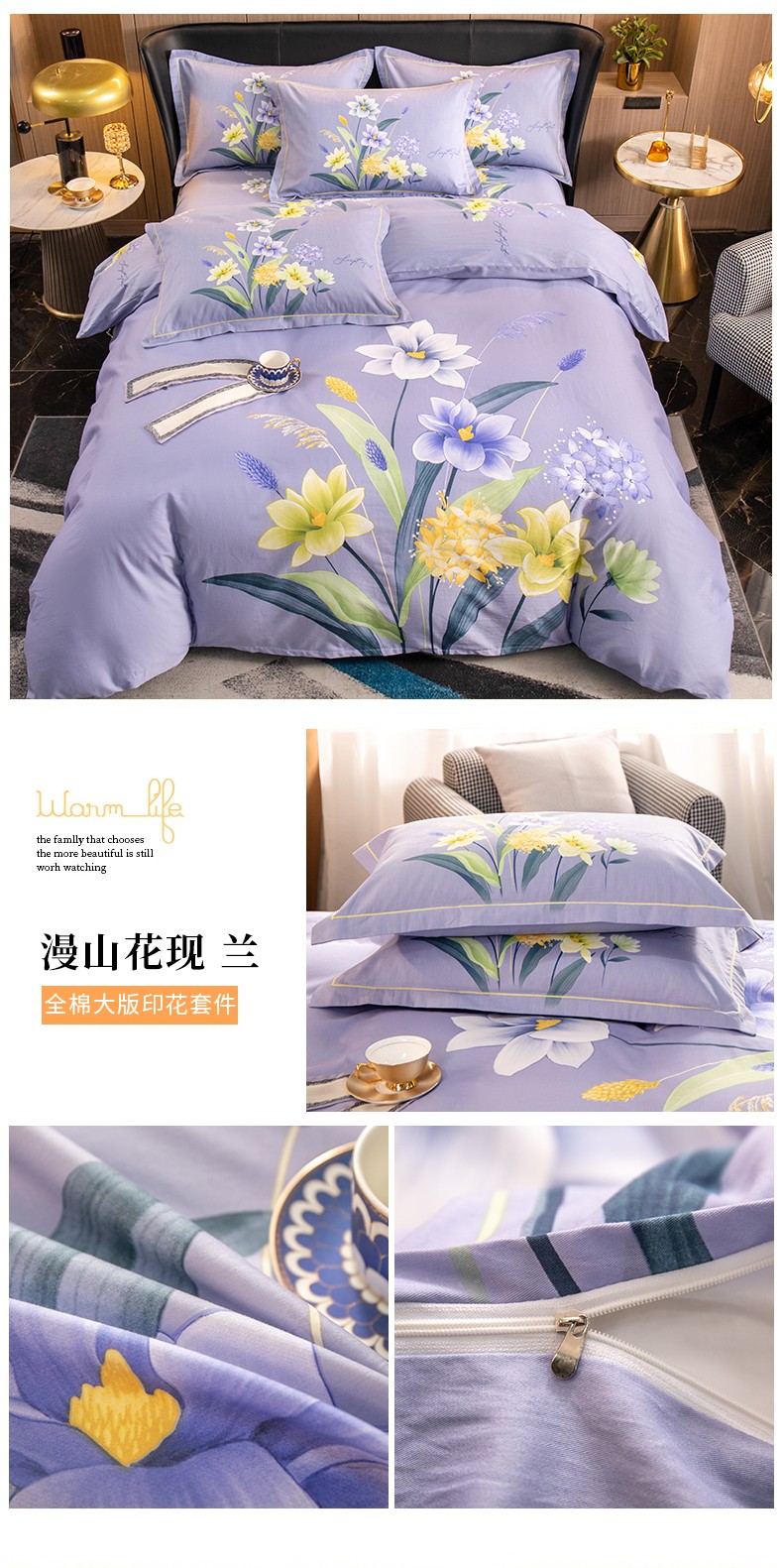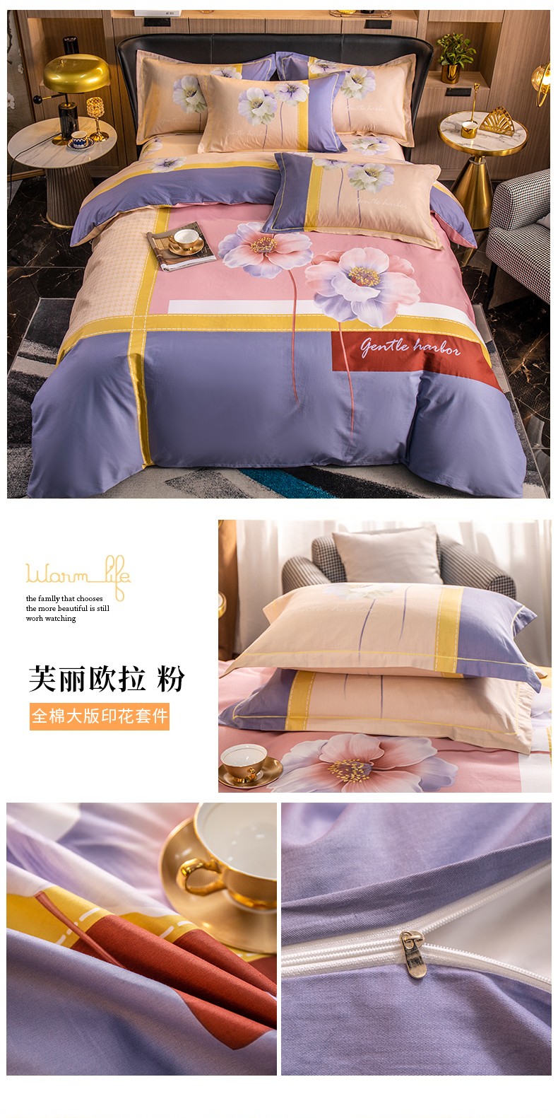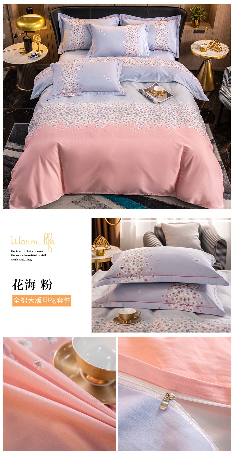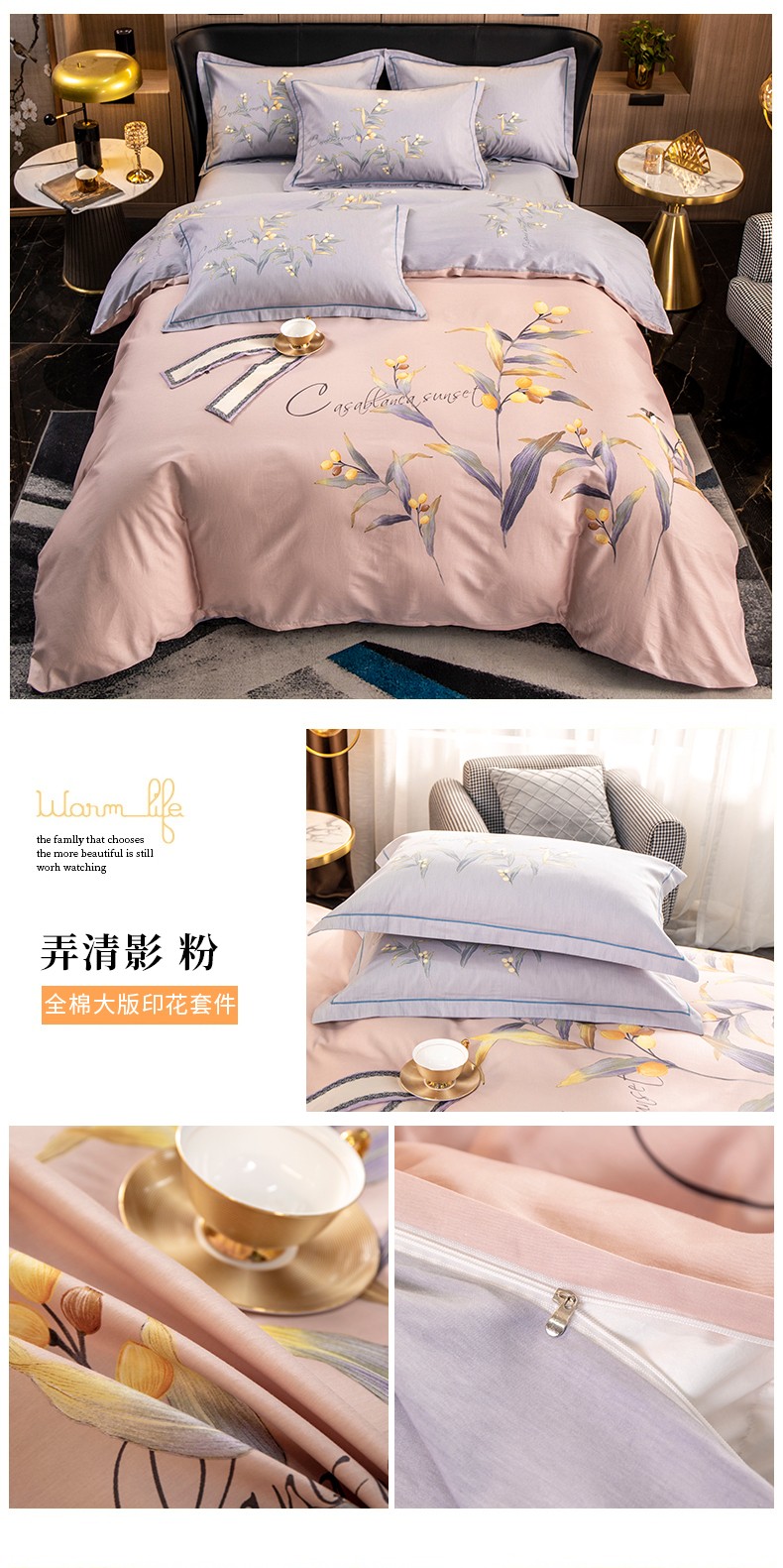 (总)雲归梦 2022新款全棉大版四件套 花卉花型