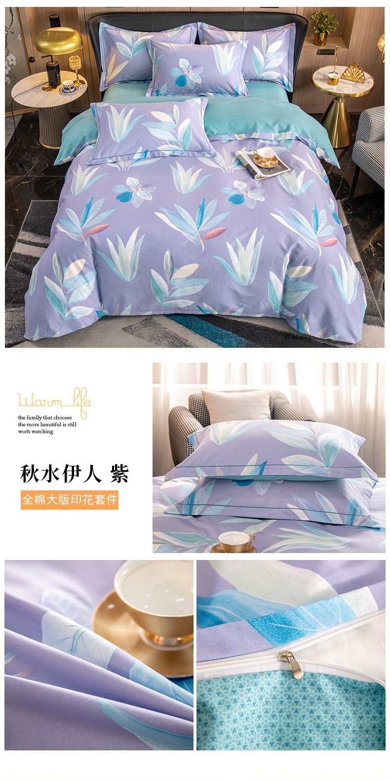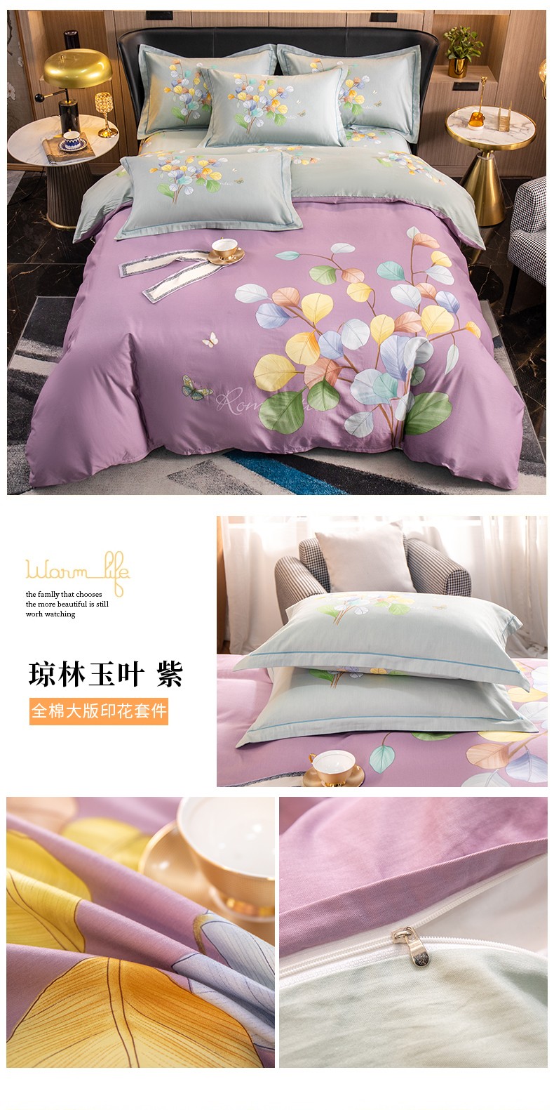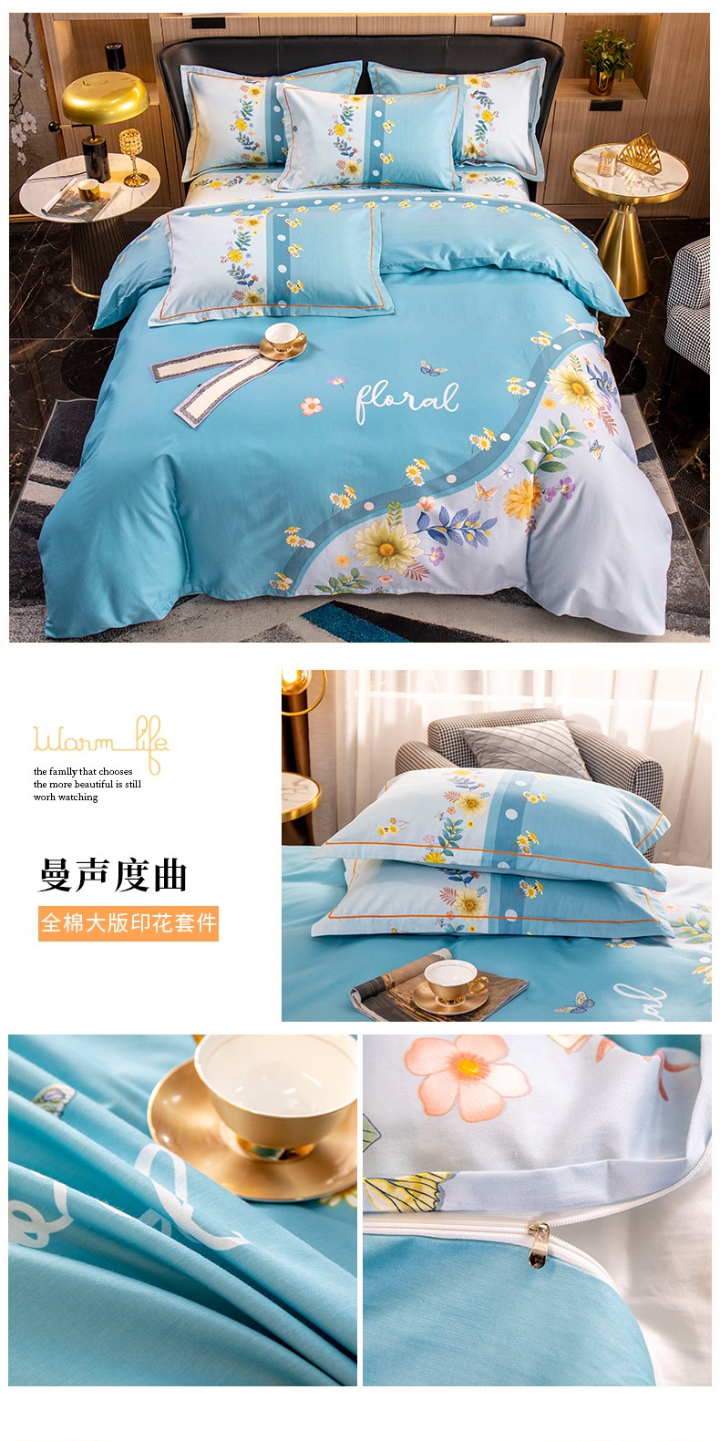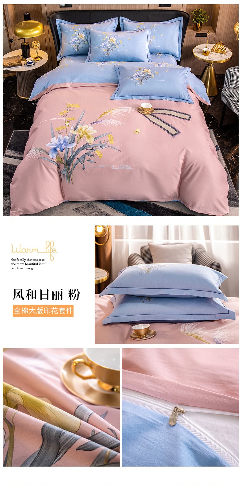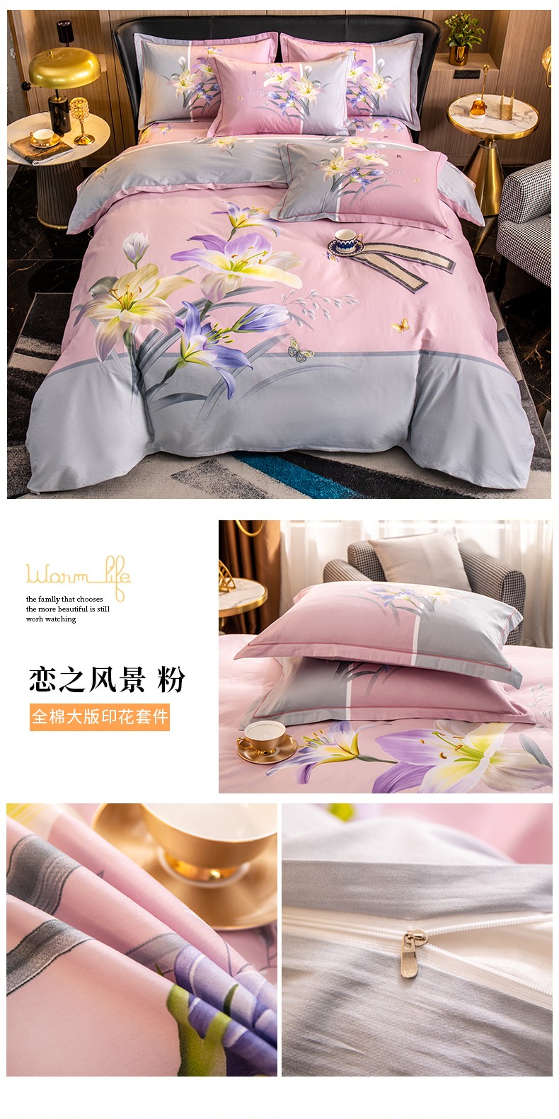 (总)雲归梦 2022新款全棉大版四件套 花卉花型