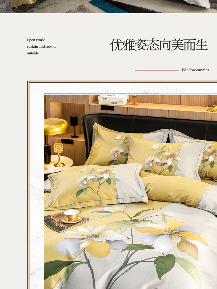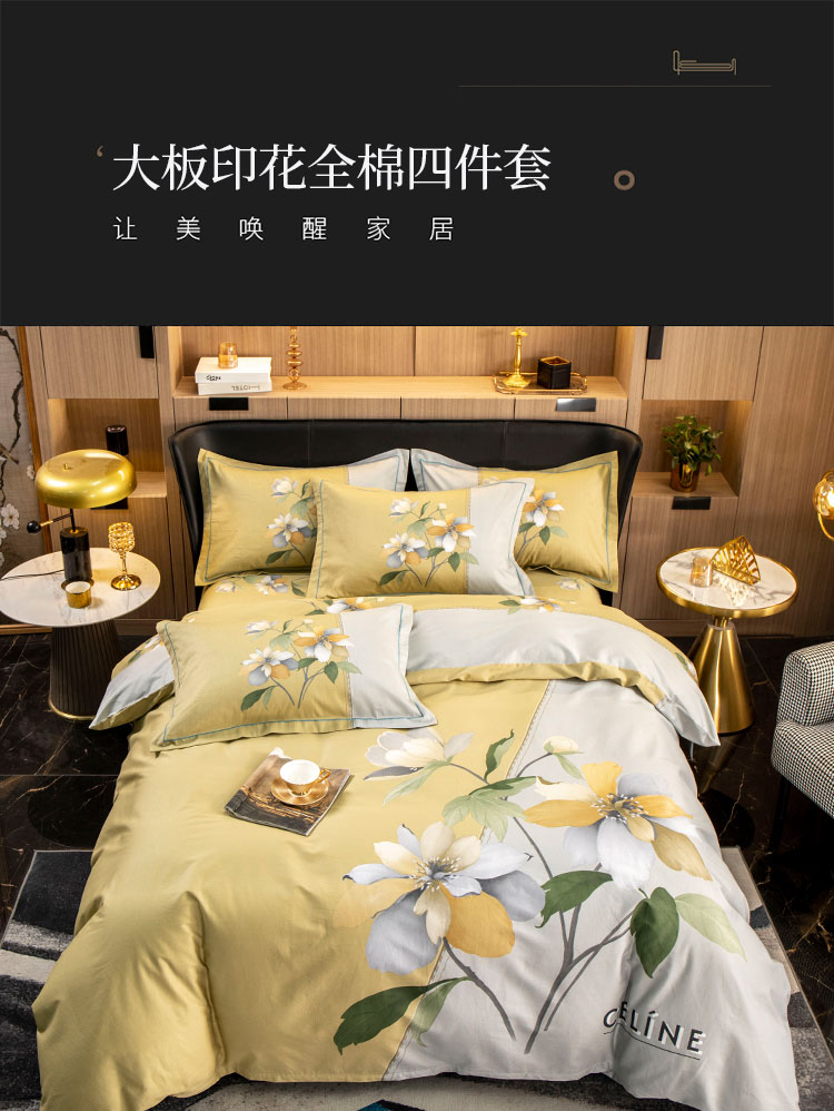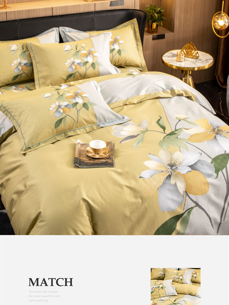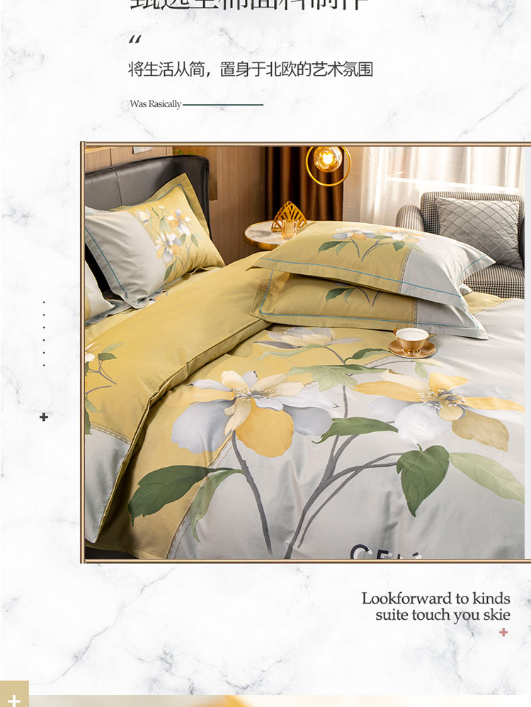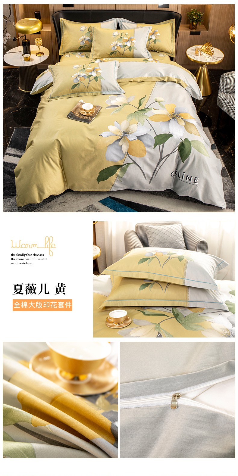 商品名称:雲归梦 2022新款全棉大版四件套 花卉花型 夏薇尔黄