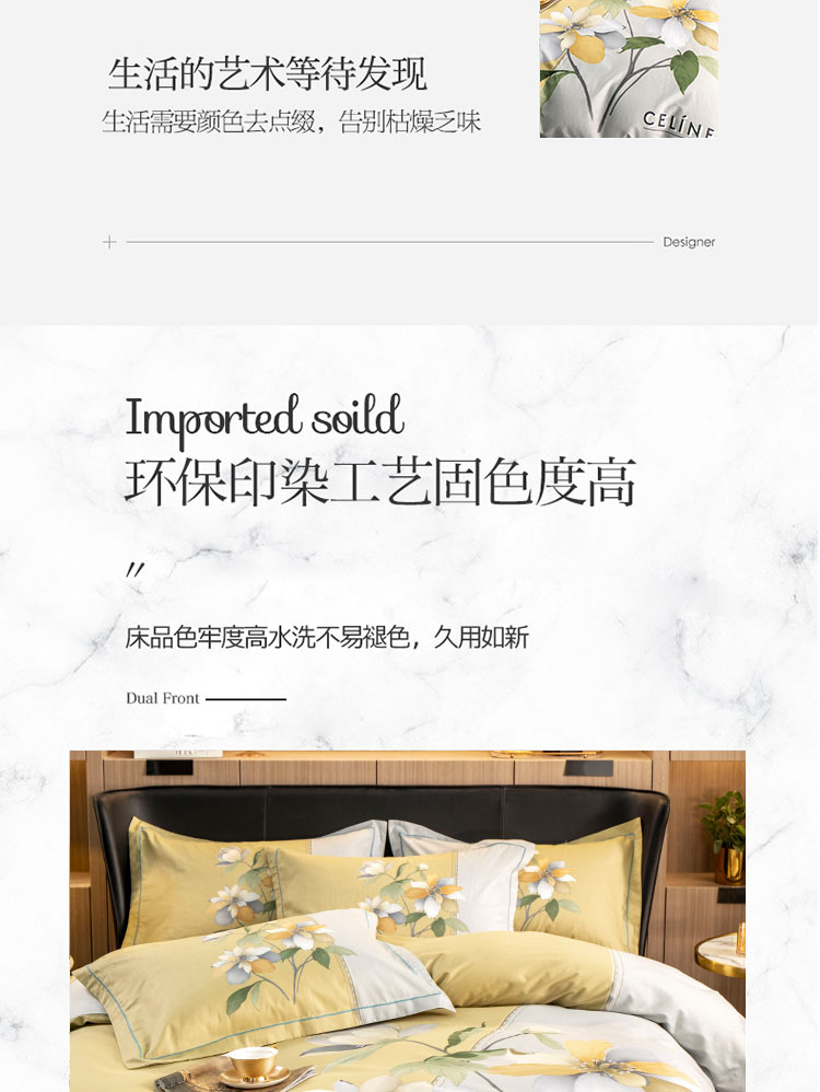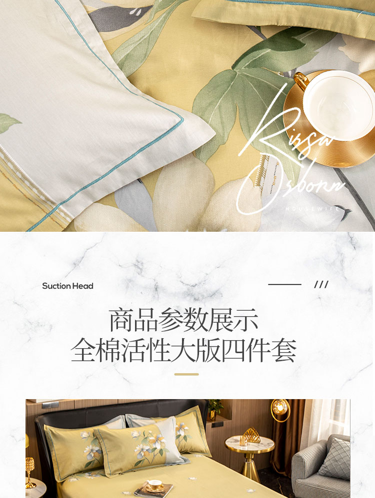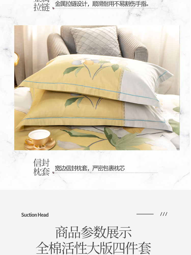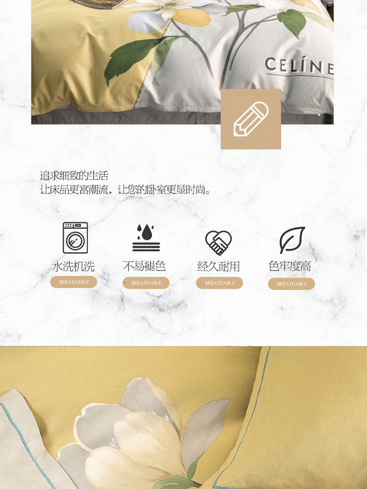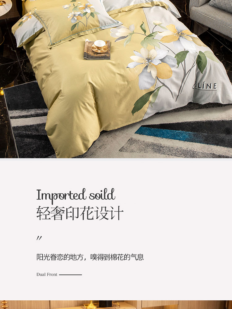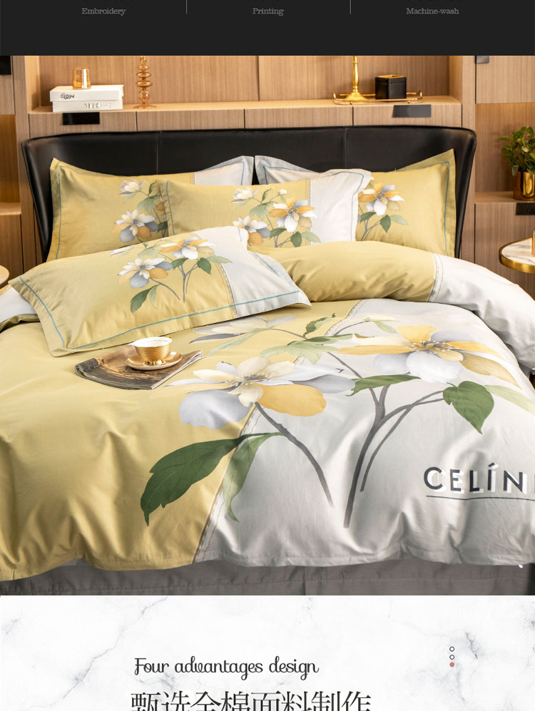 商品名称:雲归梦 2022新款全棉大版四件套 花卉花型 夏薇尔黄