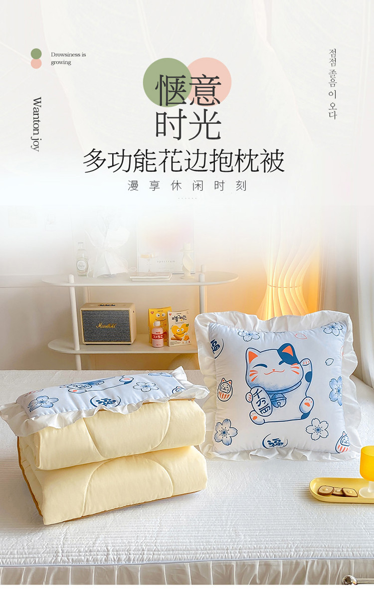 商品名称:慕澄2022新款小清新花边款抱枕被直播赠品 招财猫