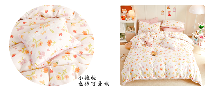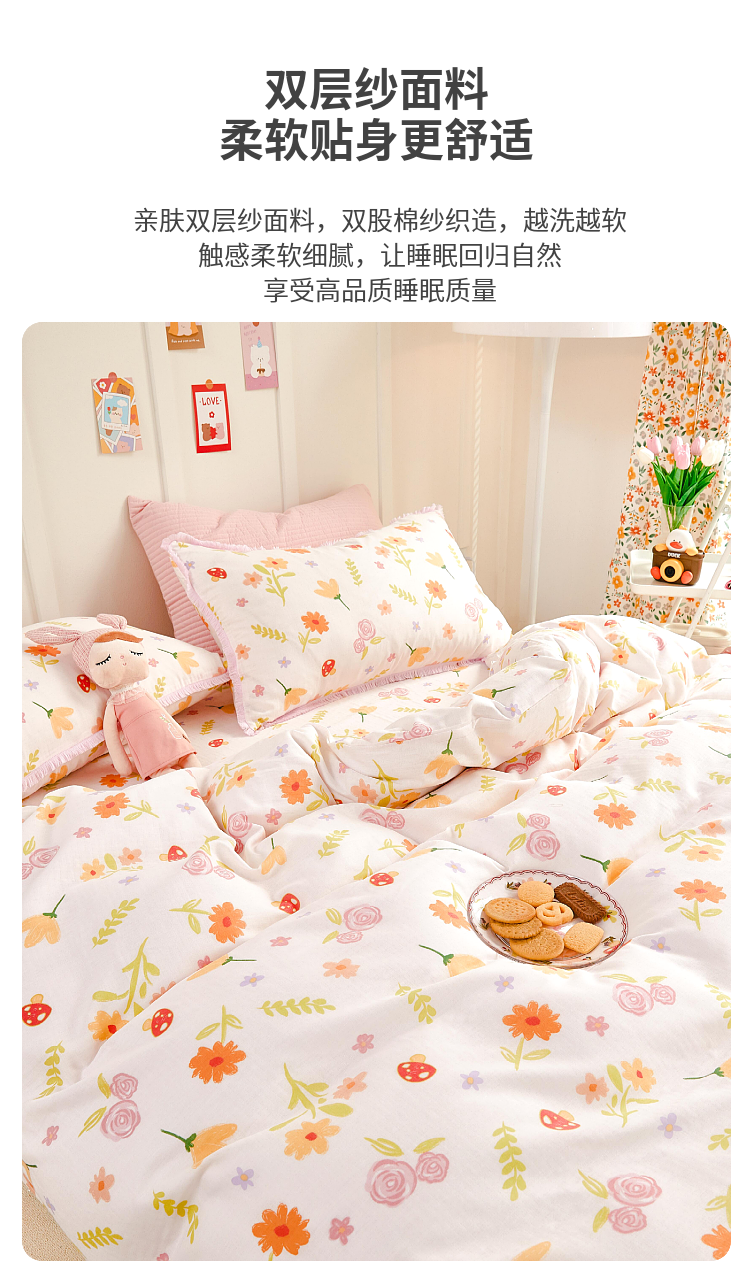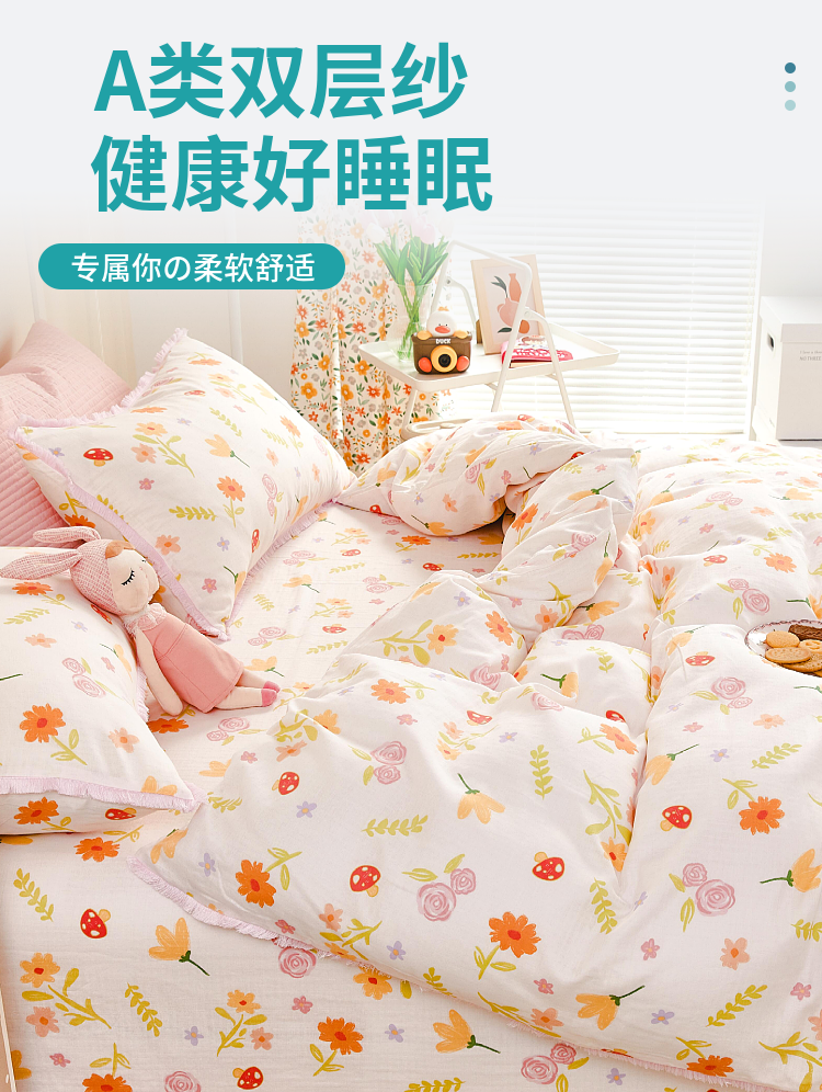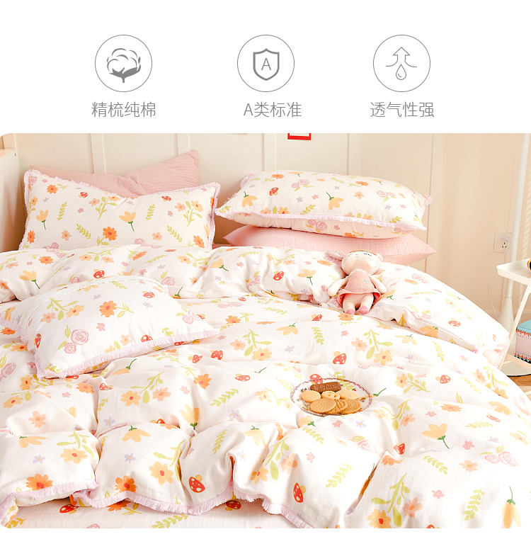 商品名称:亲亲公主2025新款小清新碎花韩版花边双层纱四件套 粉色蘑菇