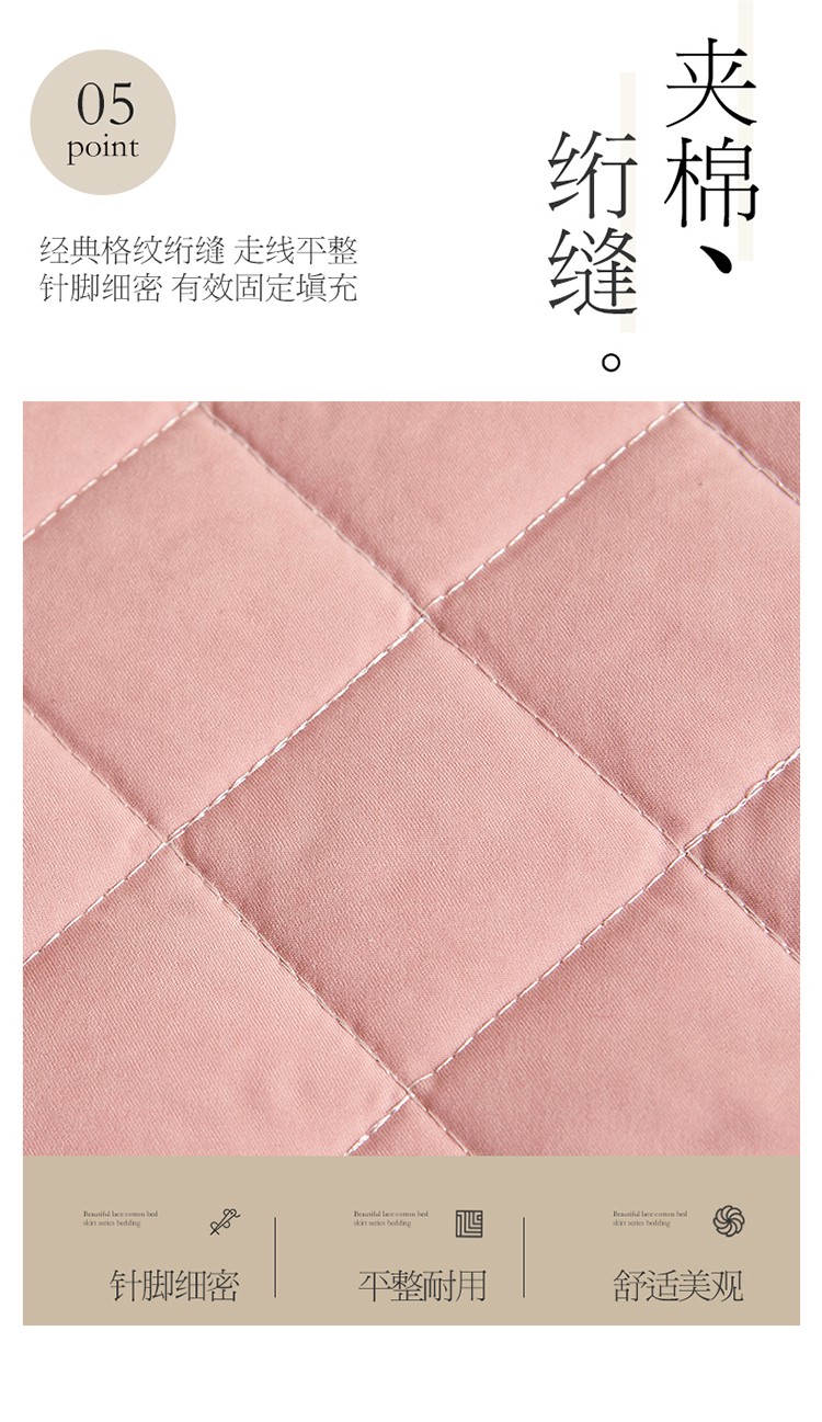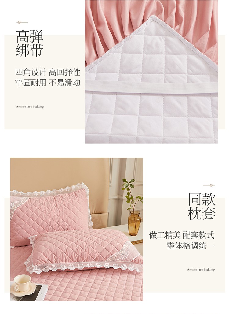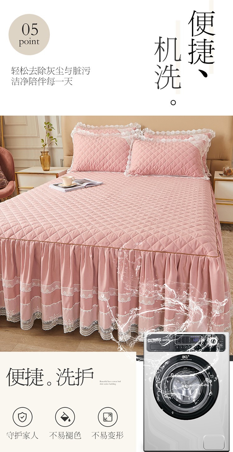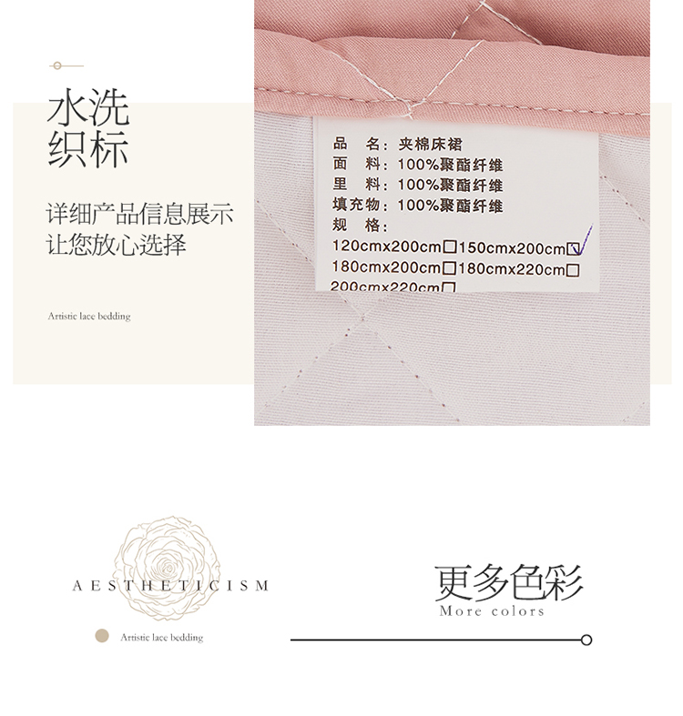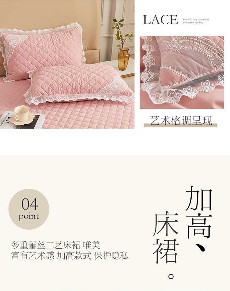 商品名称:网红馆 2025新款唯美蕾丝夹棉床裙三件套婉约佳人 桃花粉
