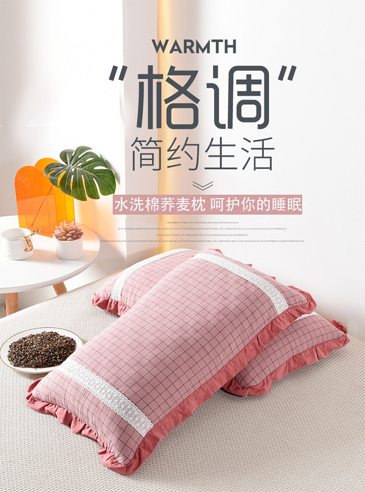 总织布人2022新款全棉水洗棉荞麦枕头枕芯-大花边系列