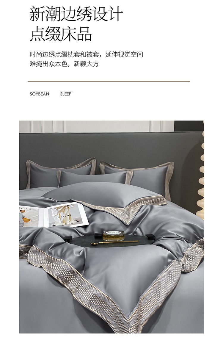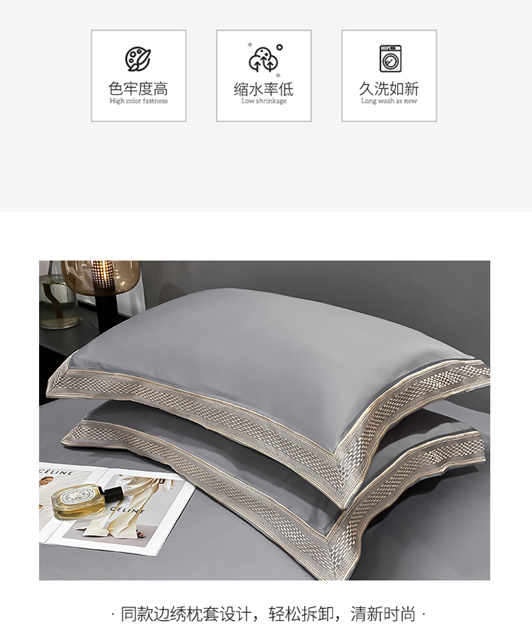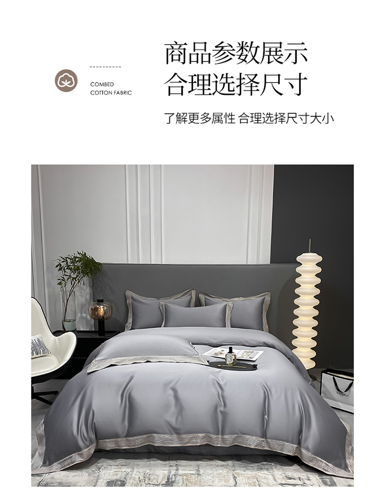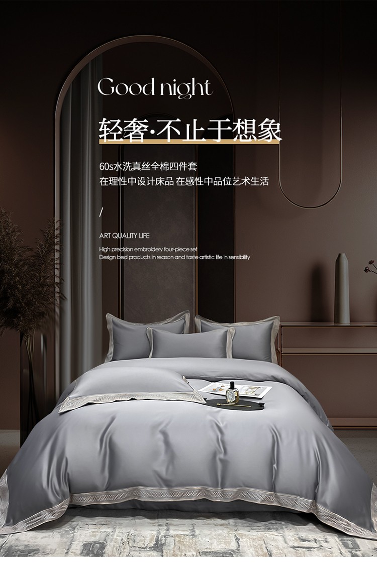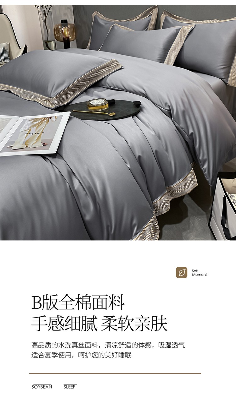 商品名称:欧乐蒂 2022新款A版水洗真丝B版全棉四件套-简爱 简爱-高级灰