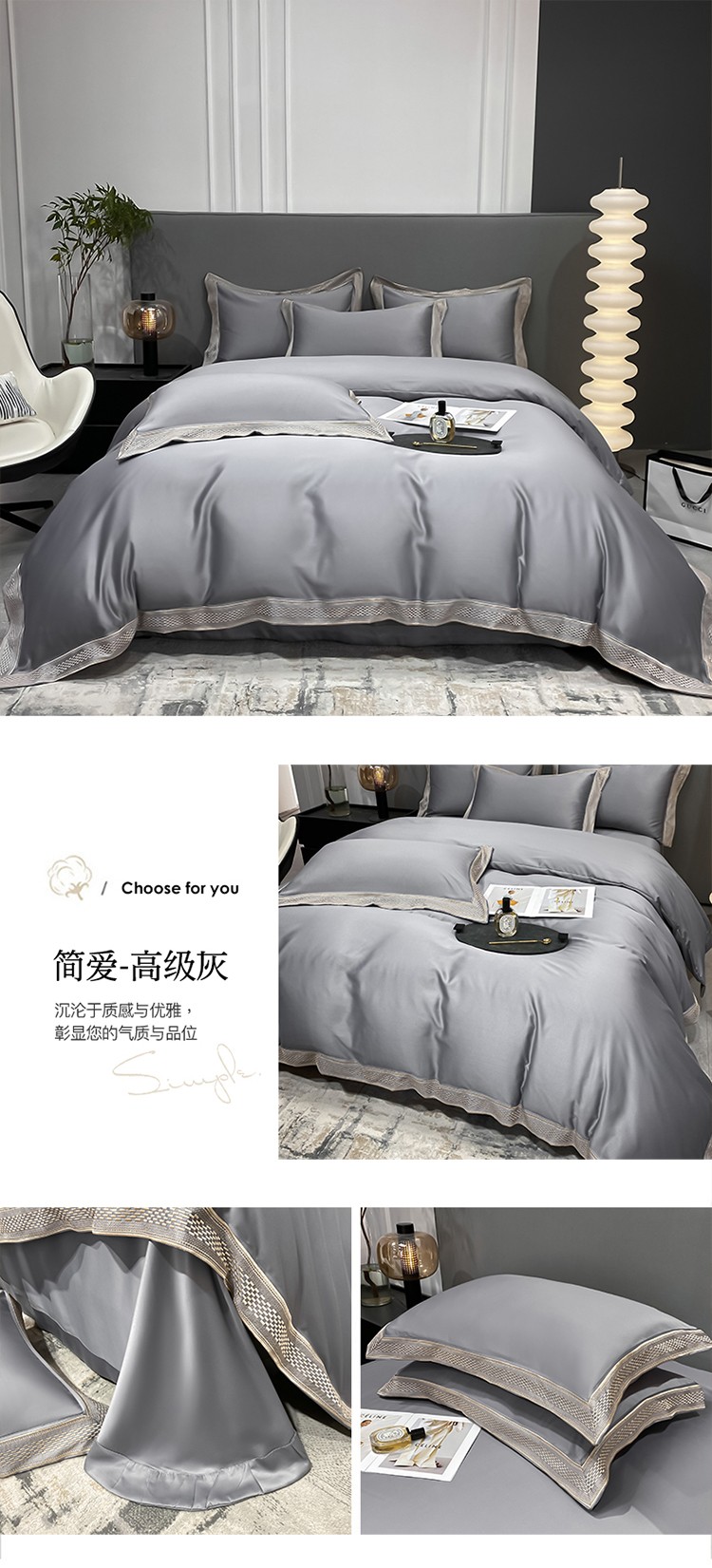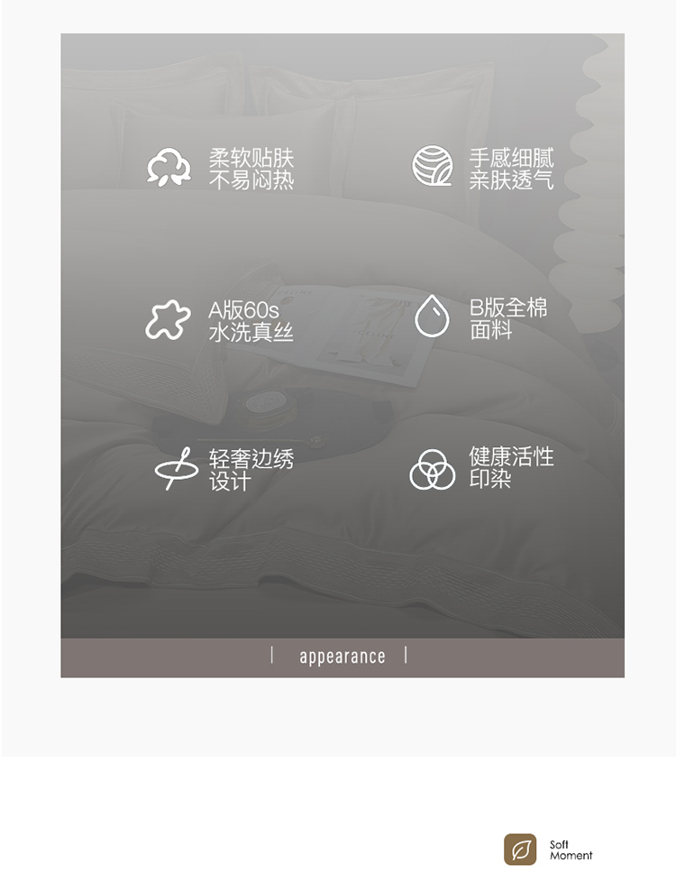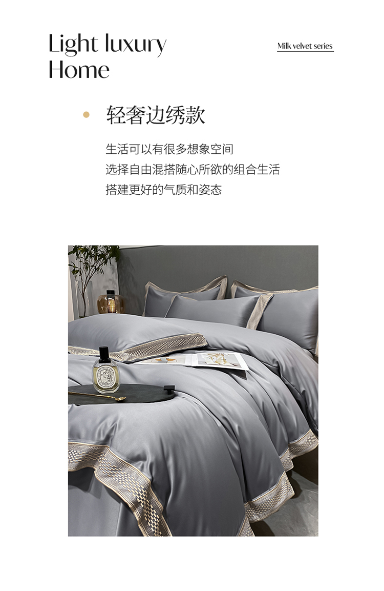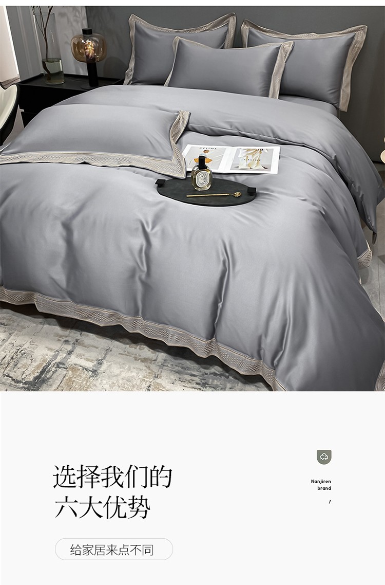 商品名称:欧乐蒂 2022新款A版水洗真丝B版全棉四件套-简爱 简爱-高级灰