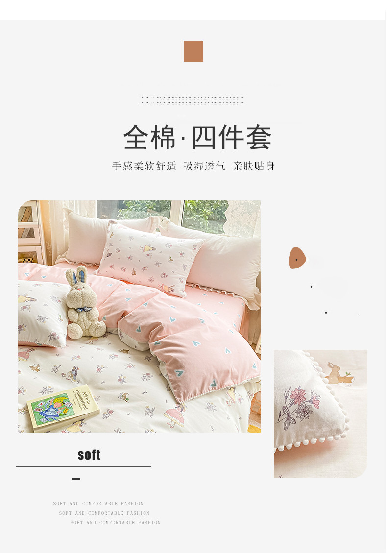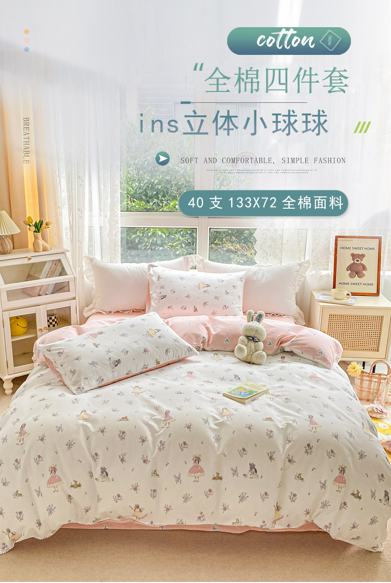 商品名称:捌月 2024新款全棉ins小球球款四件套 花园里