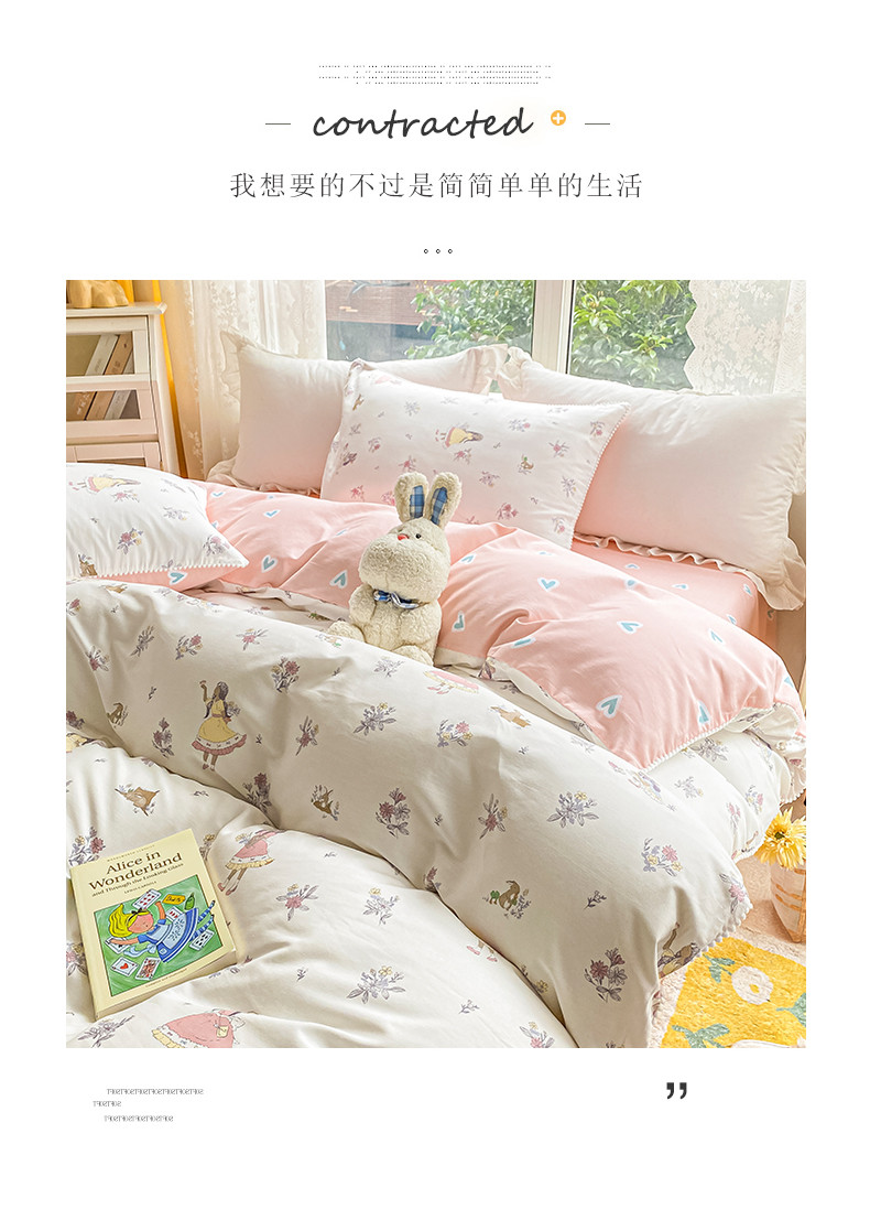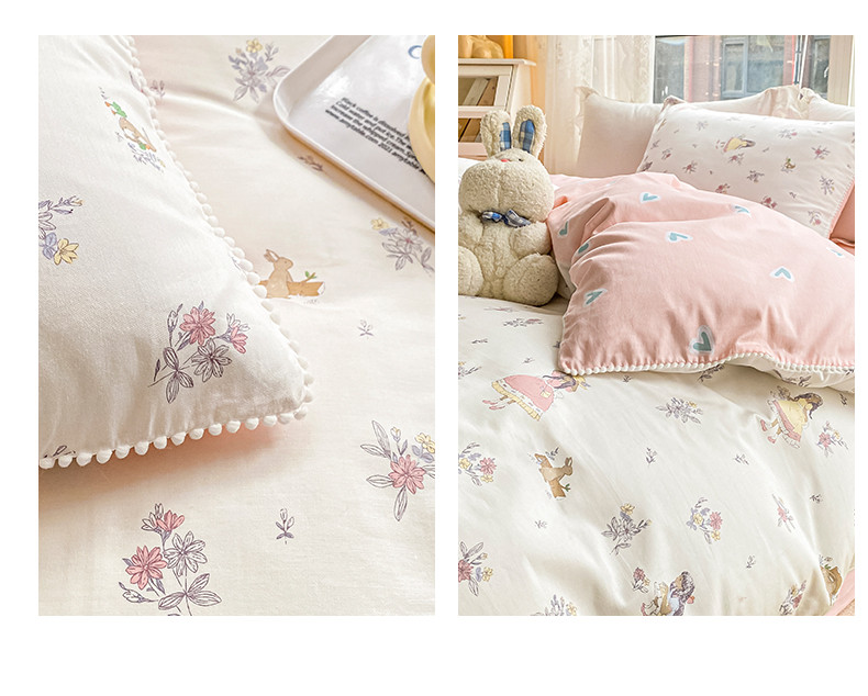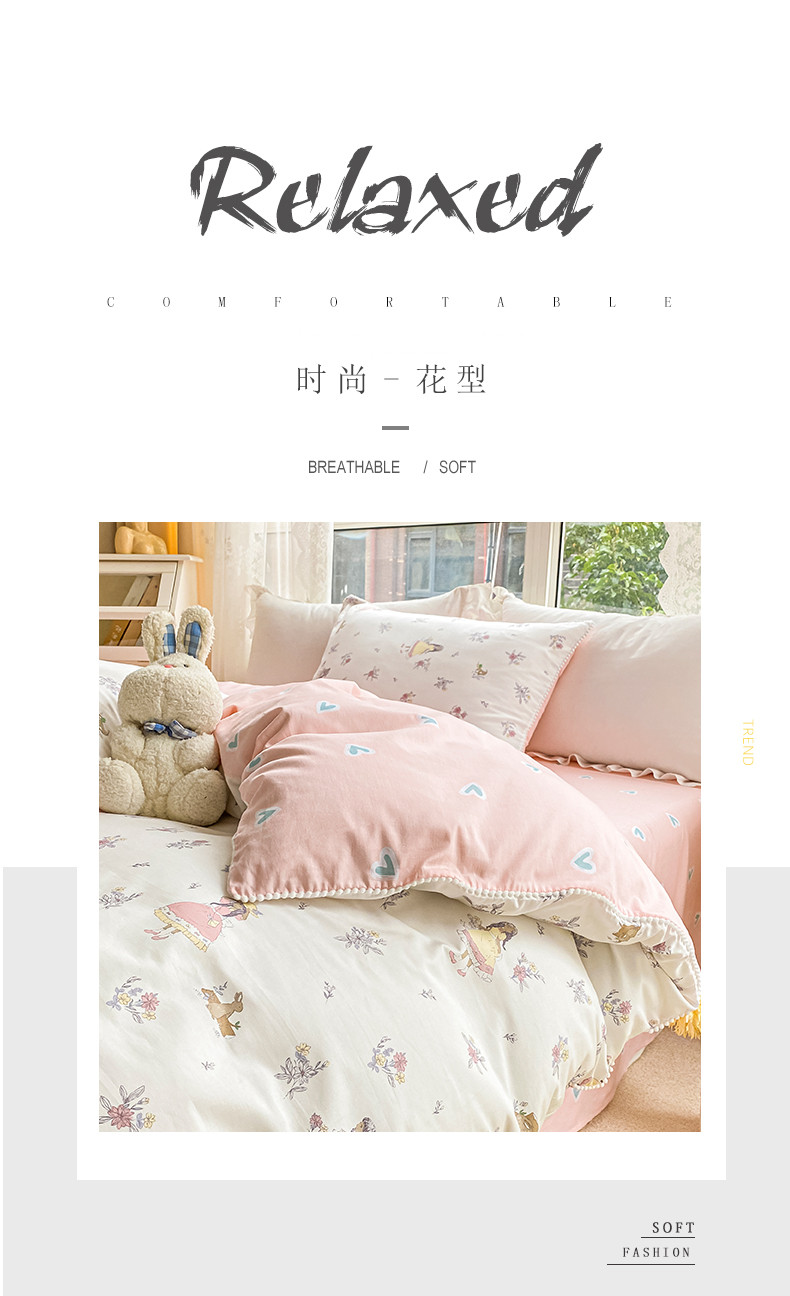 捌月 2024新款全棉ins小球球款四件套 花园里