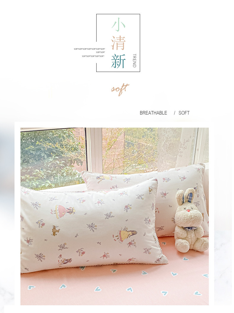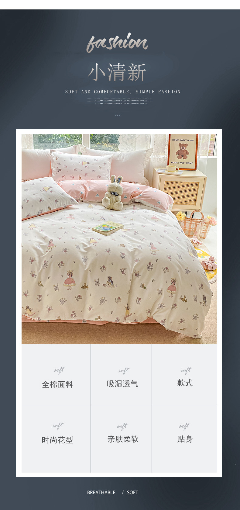 (总)捌月 2023新款13372全棉四件套竖纹印花系列,草莓园,兔小姐,小兰花,小甜心
