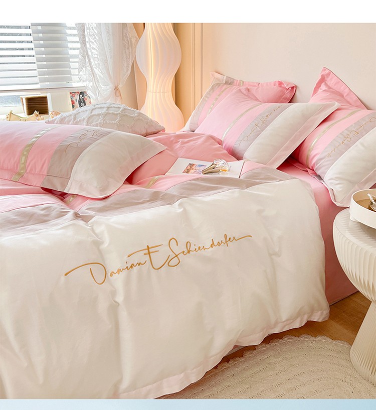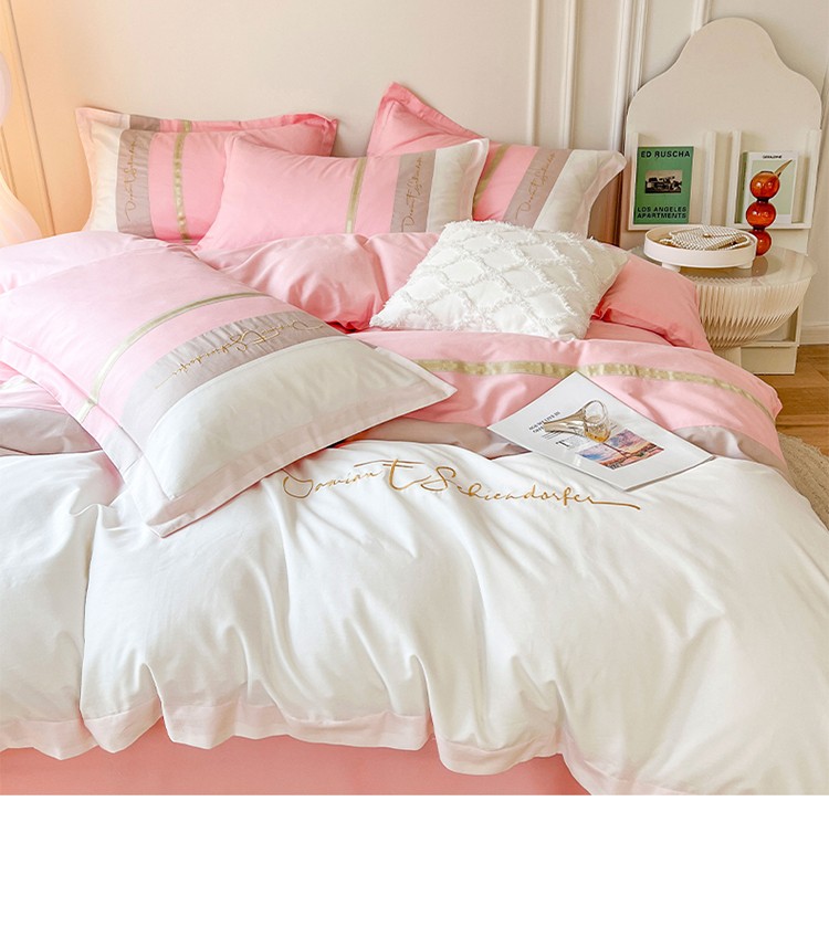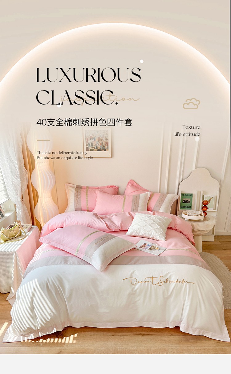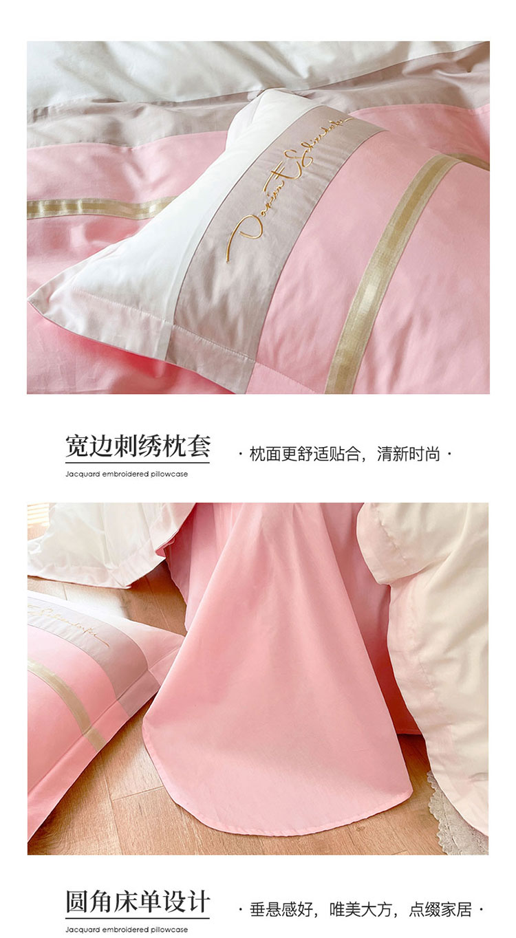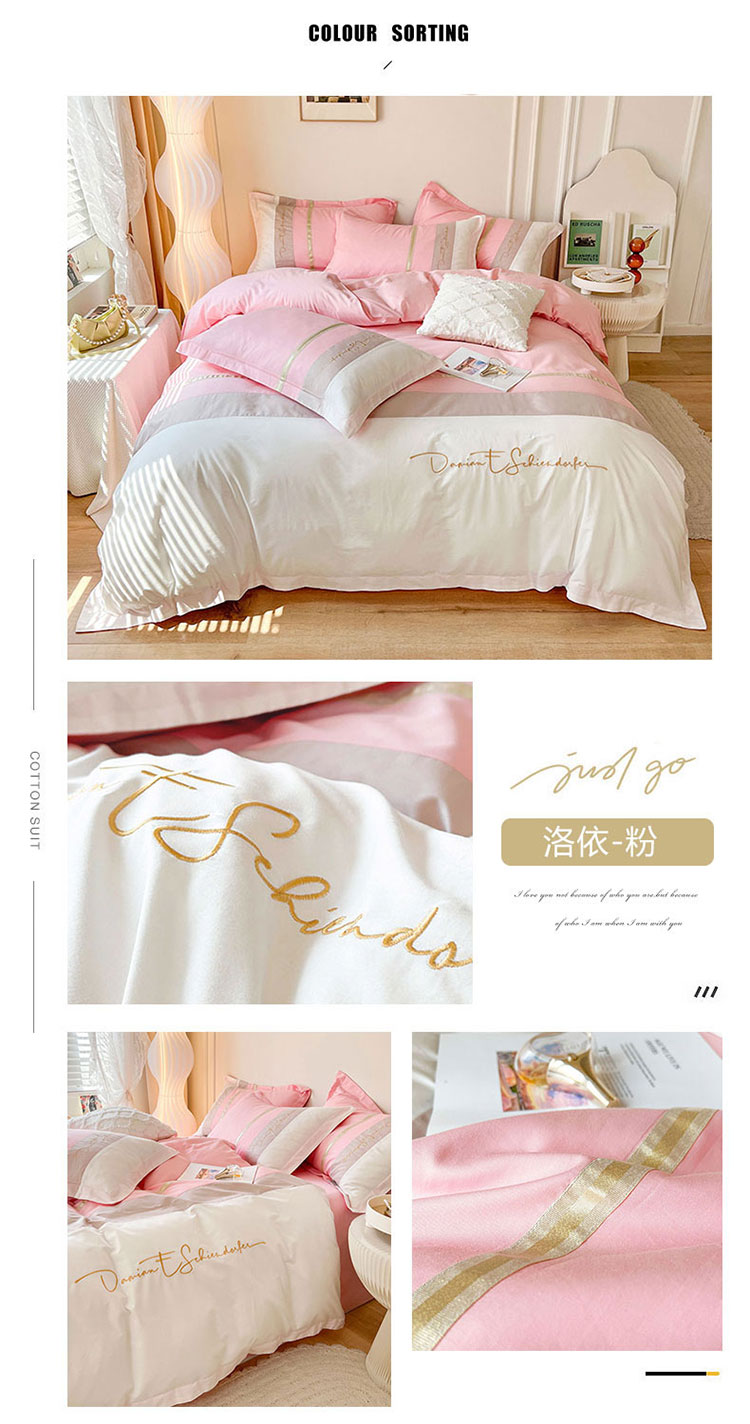 惯盈 2022新款全棉四件套40支拼色刺绣四件套-洛依 洛依-粉