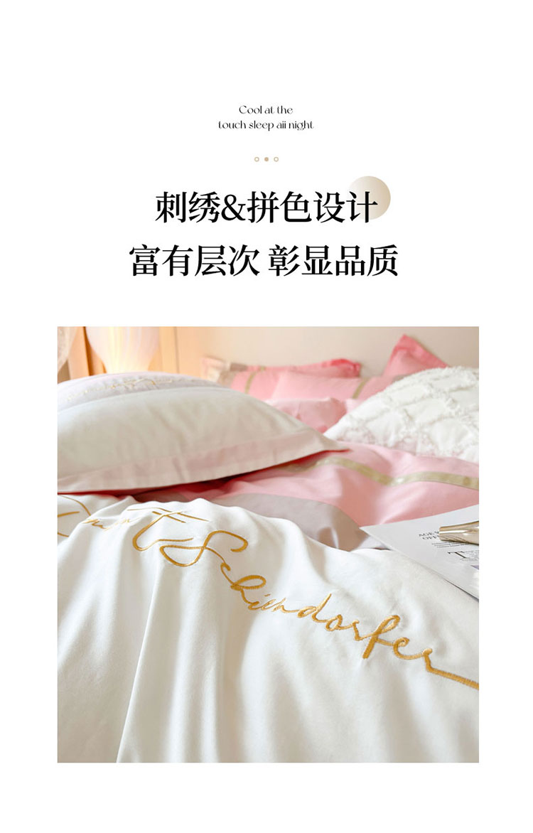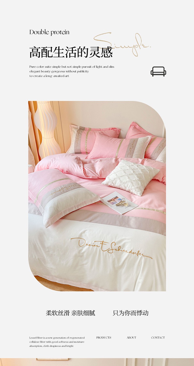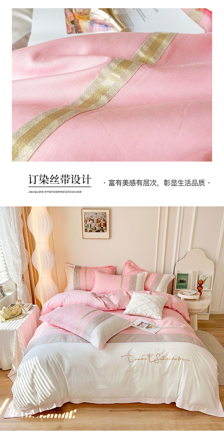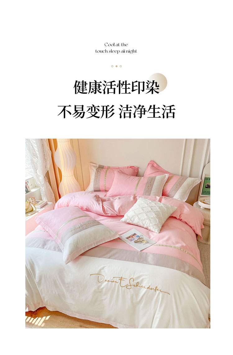 惯盈 2022新款全棉四件套40支拼色刺绣四件套-洛依 洛依-粉