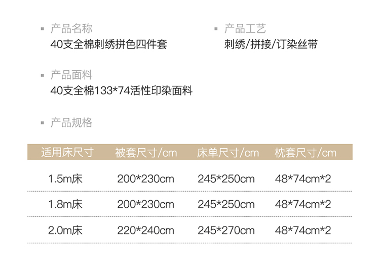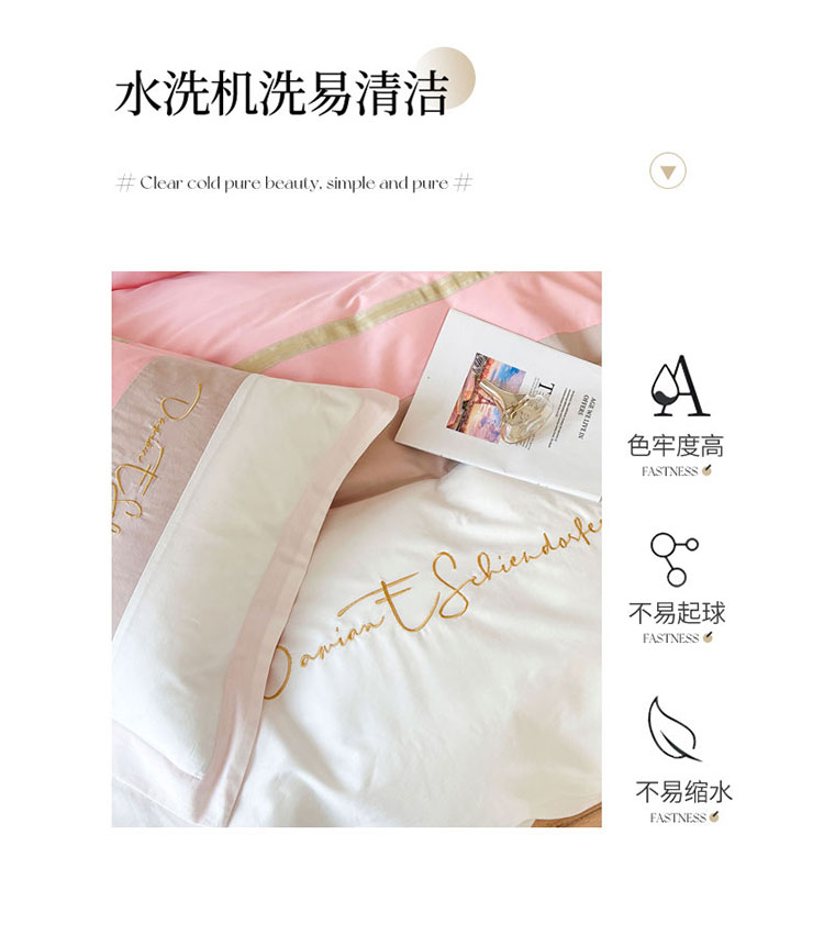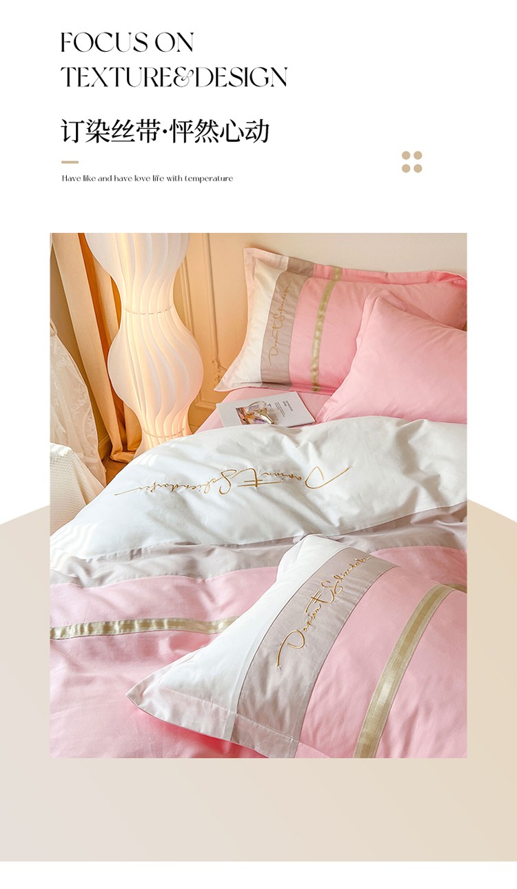 商品名称:惯盈 2022新款全棉四件套40支拼色刺绣四件套-洛依 洛依-粉