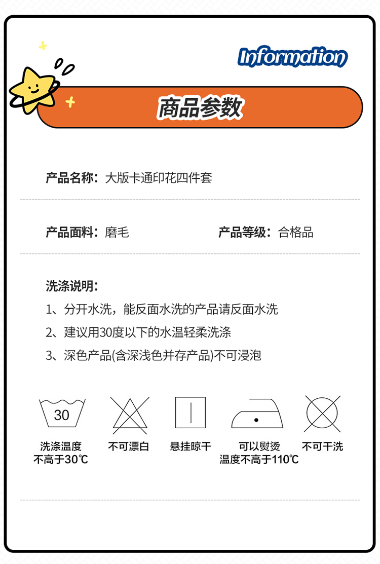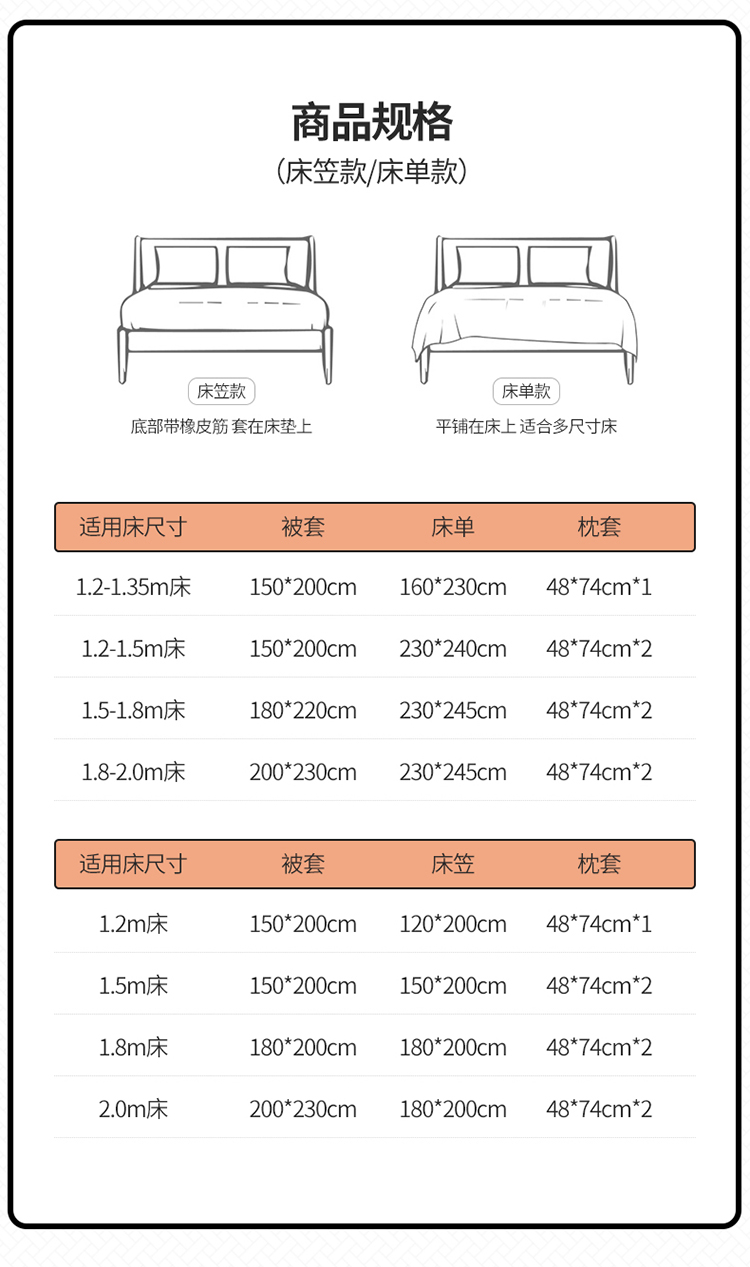 中号(适合1.5m床笠)被套200*230,床笠150*200,枕套48*74 | ¥68.00 |