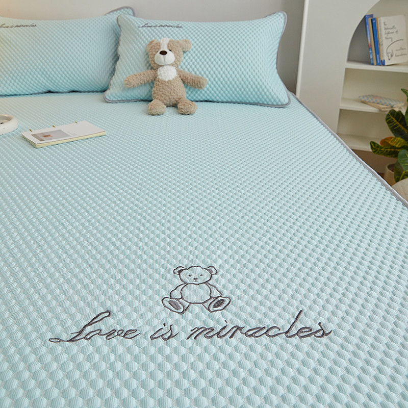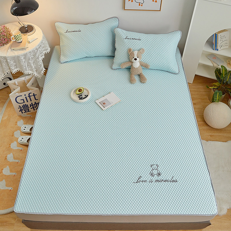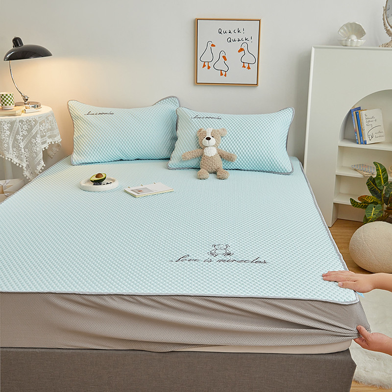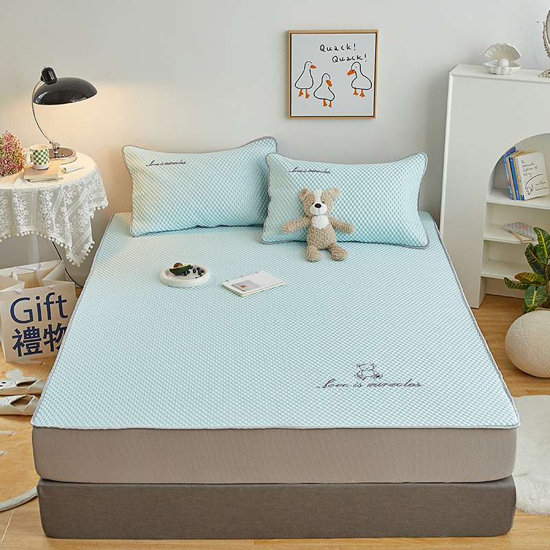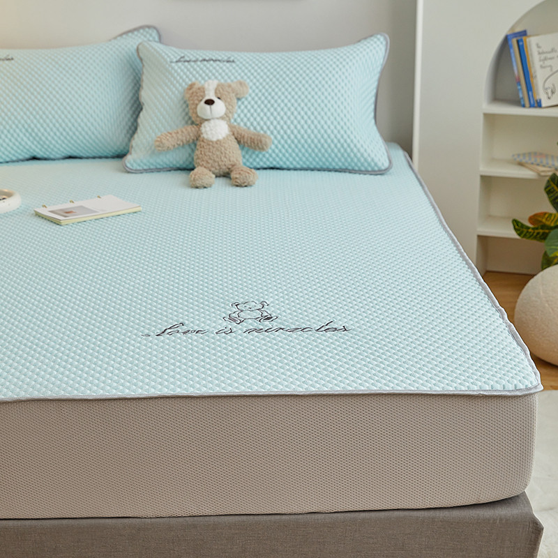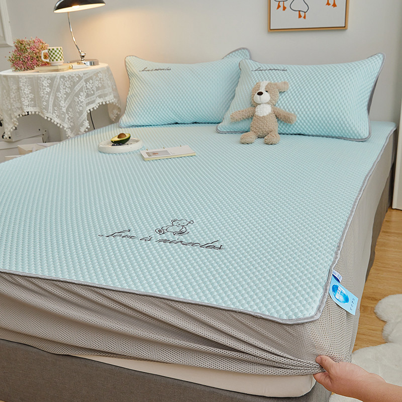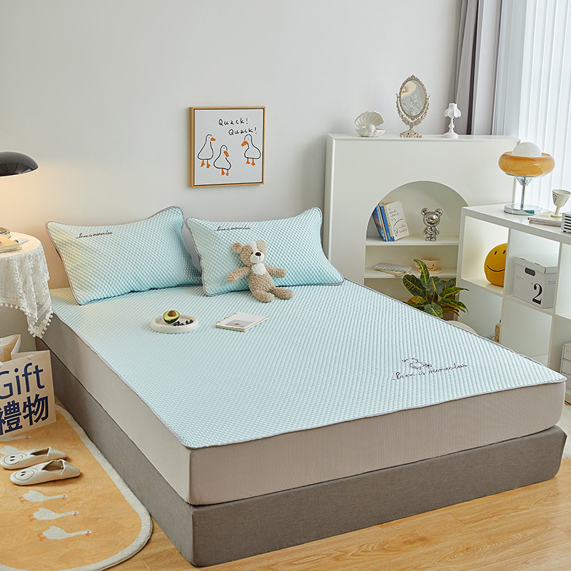 金丝鸟 2022新款凉感豆豆A类按摩凉席三件套 浅粉蓝