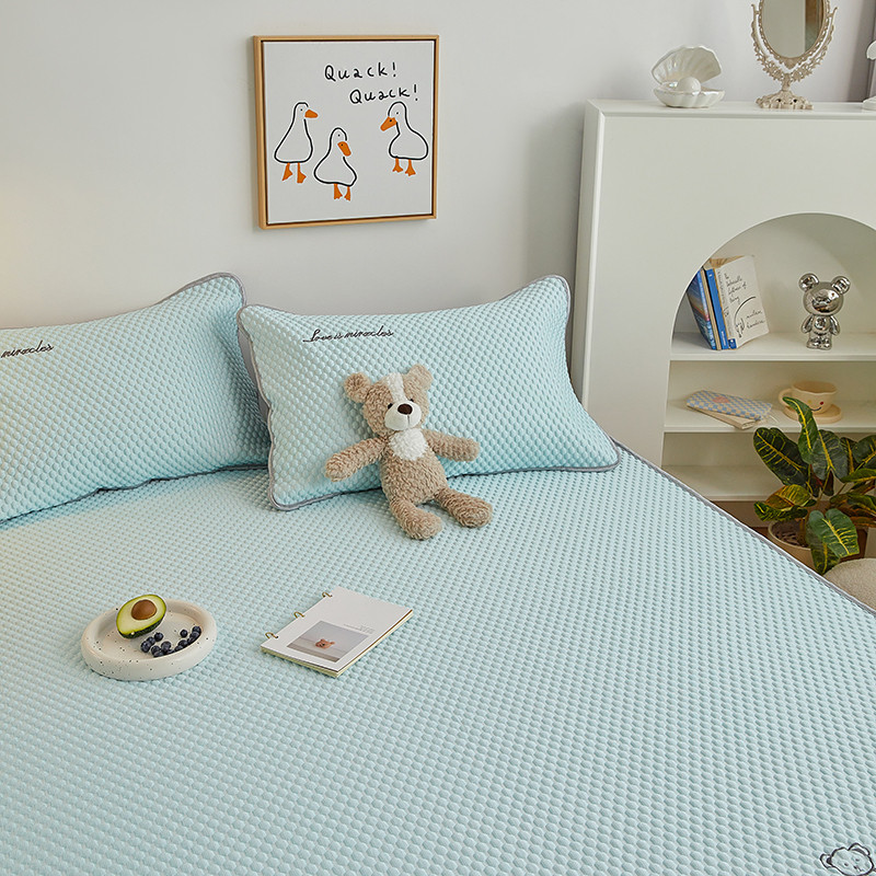 商品名称:金丝鸟 2022新款凉感豆豆A类按摩凉席三件套 浅粉蓝