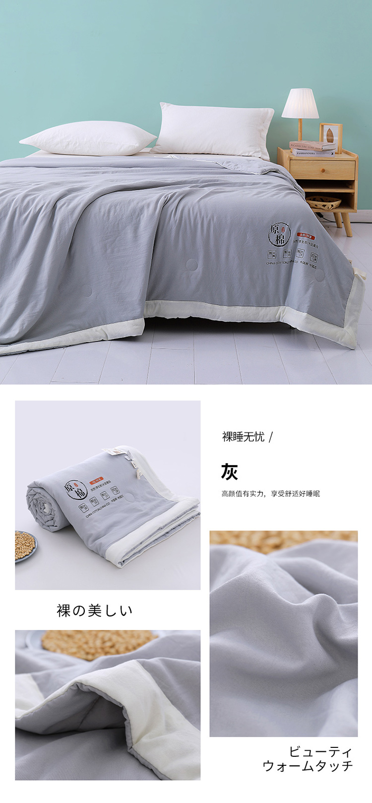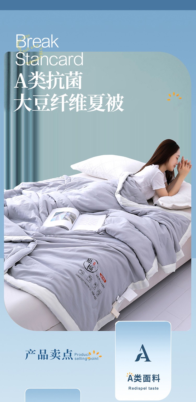 商品名称:梦镜 2025新款A类原棉大豆抗菌夏凉被 灰