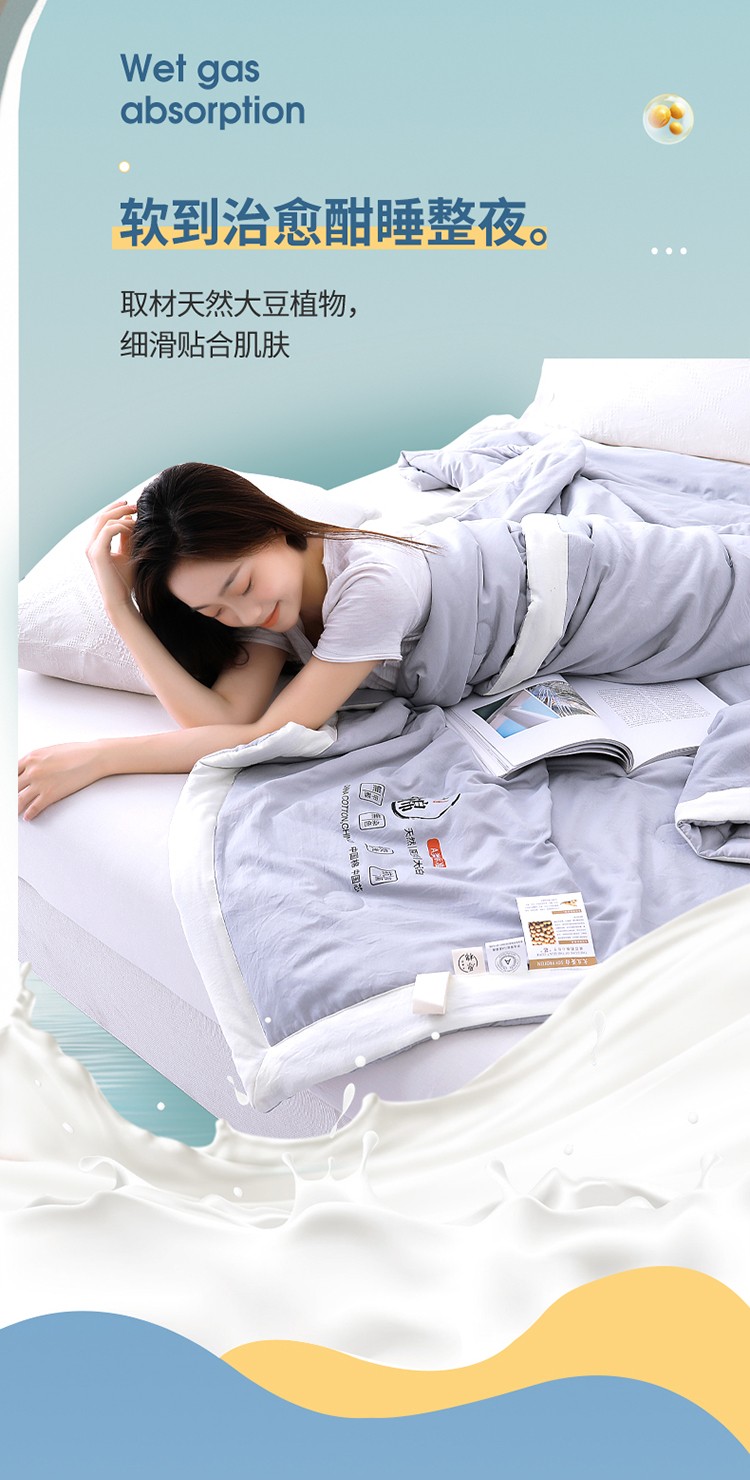 (总)梦镜 2025新款A类原棉大豆抗菌夏凉被,豆沙,灰,蓝,米白,玉