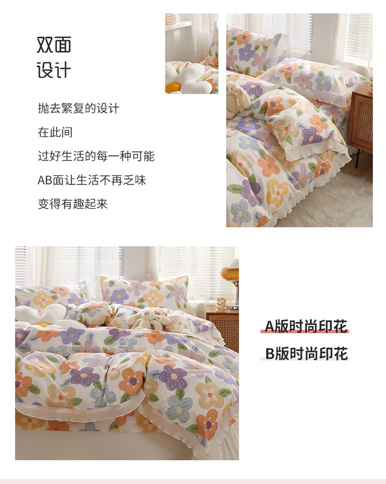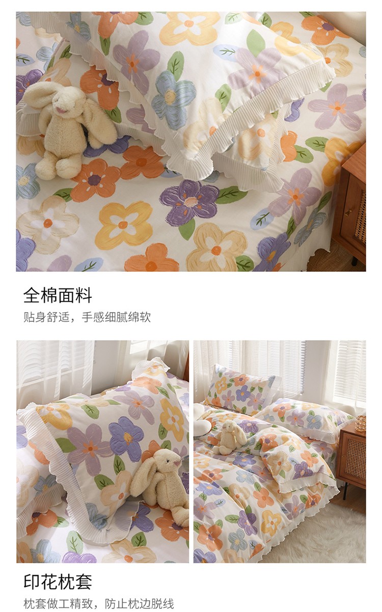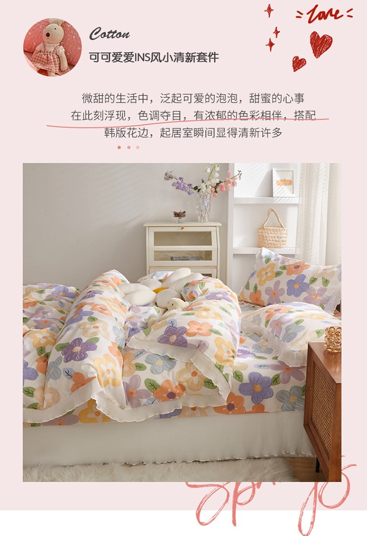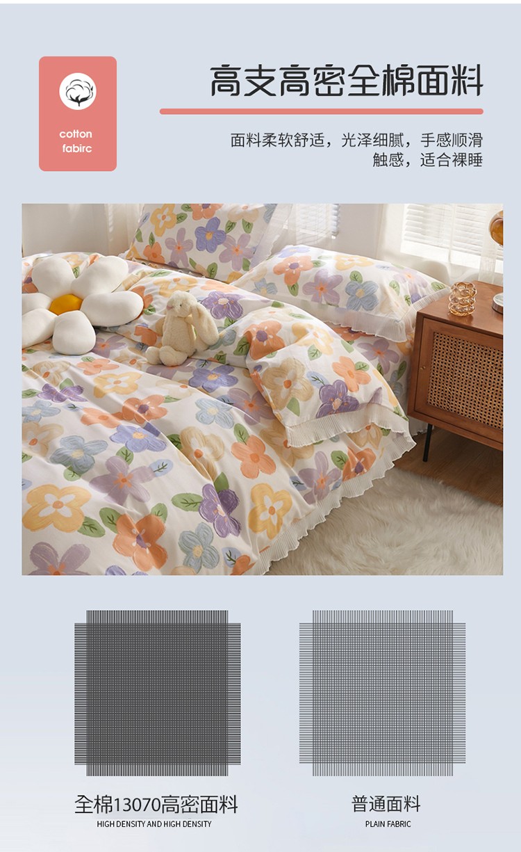 当前位置: 91家纺网 > 商品网购 > 床品套件 > 四件套 > 全棉普通四件套 > 2022新款13070全棉雪纺花边四件套被套床单床盖幸福香氛