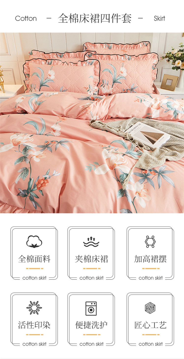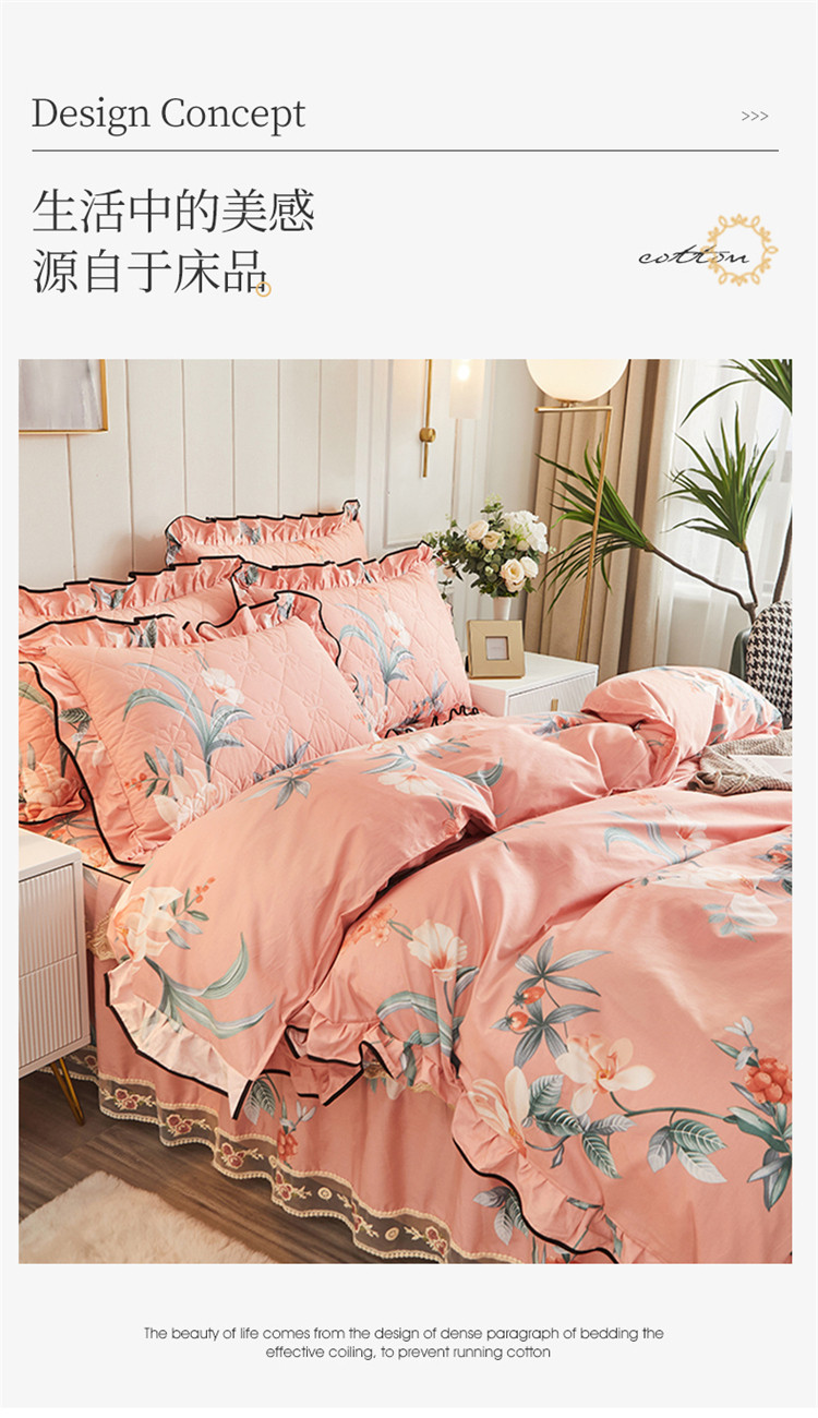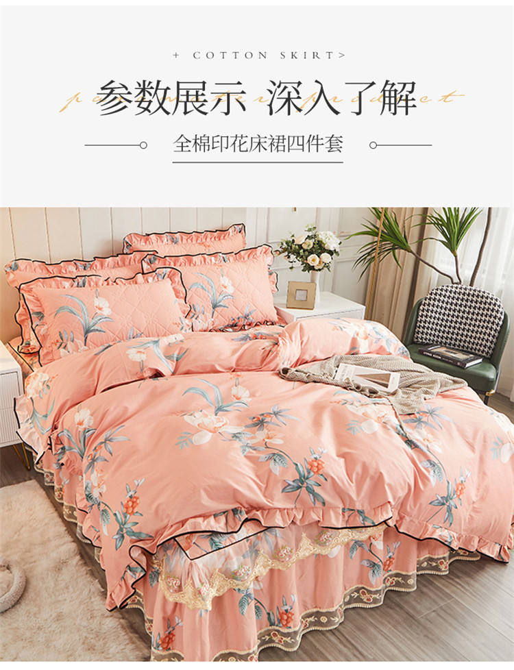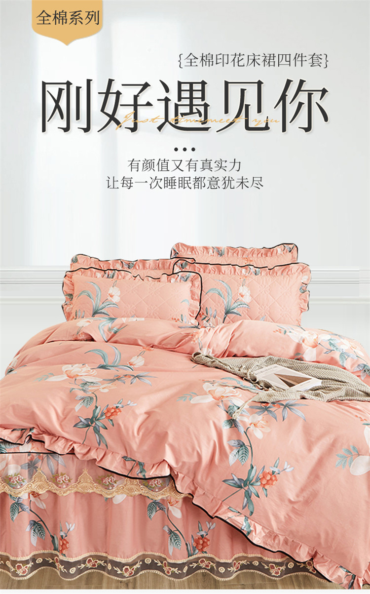 当前位置: 91家纺网 > 商品网购 > 床品套件 > 四件套 > 全棉活性四件套 > 十个点家纺 2022新款全棉蕾丝夹棉床裙四件套 如诗如画-粉