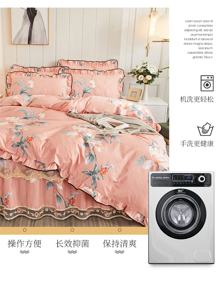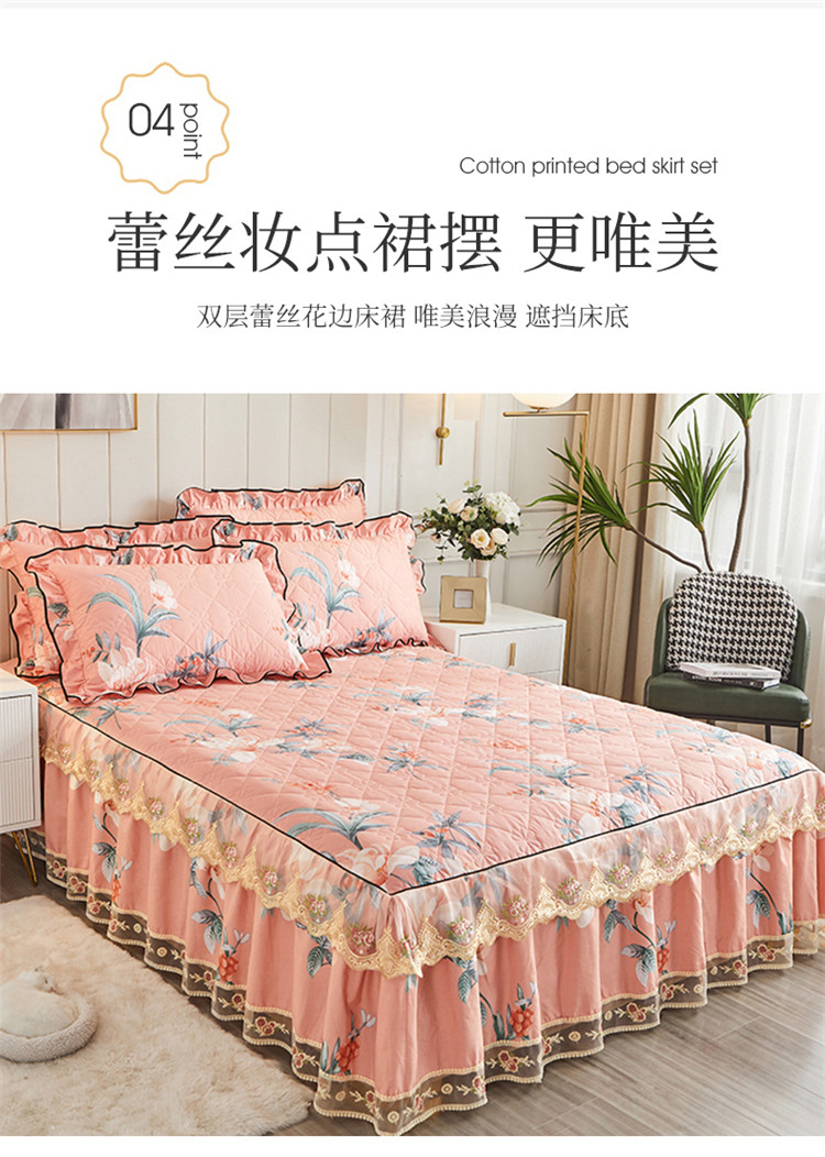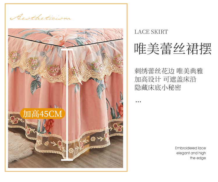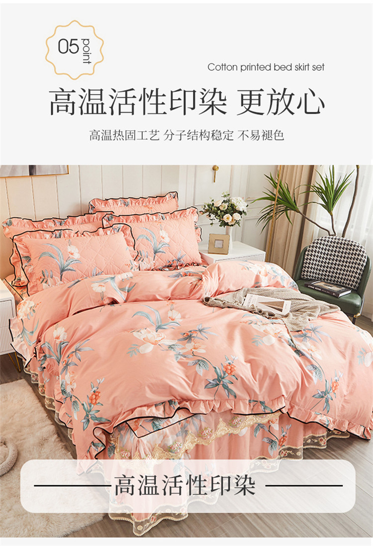 当前位置: 91家纺网 > 商品网购 > 床品套件 > 四件套 > 全棉活性四件套 > 十个点家纺 2022新款全棉蕾丝夹棉床裙四件套 如诗如画-粉