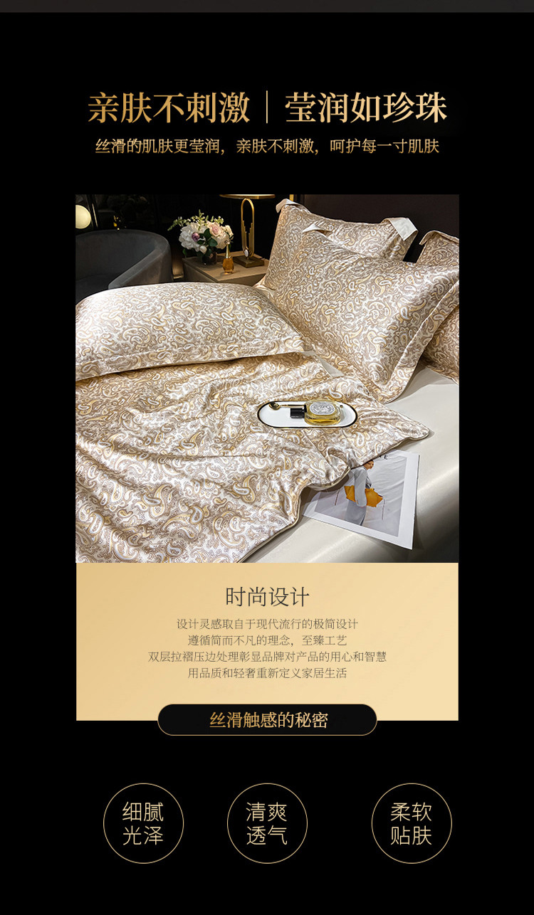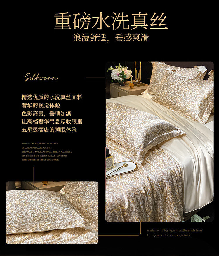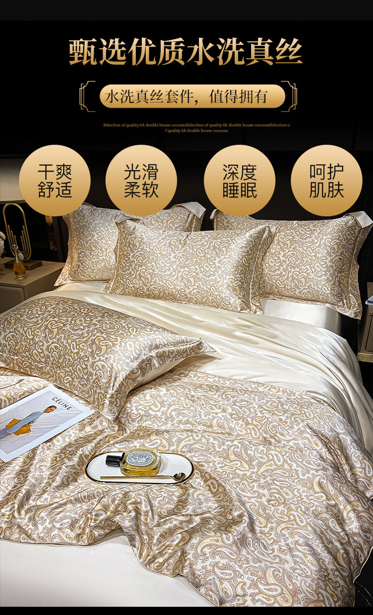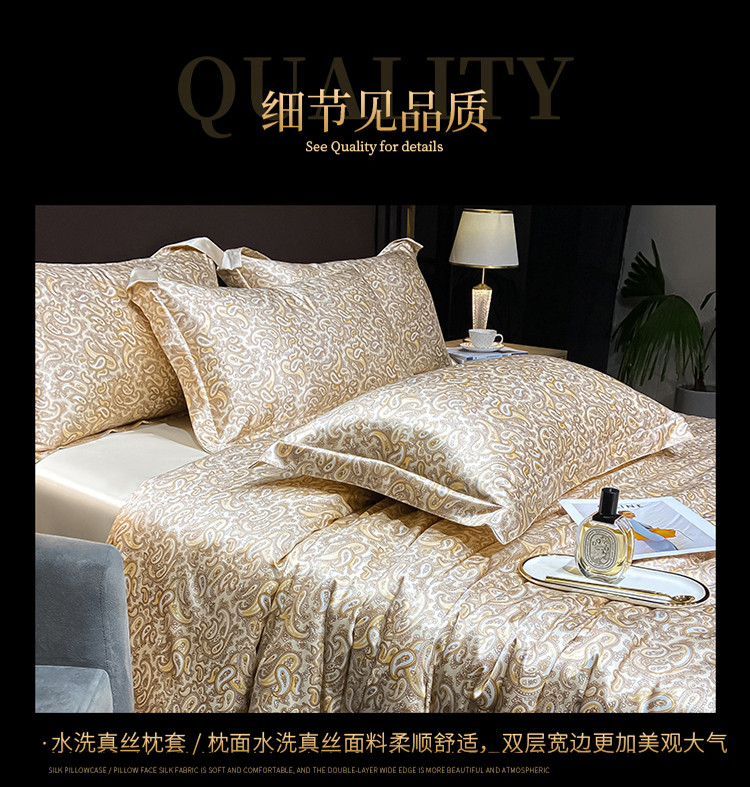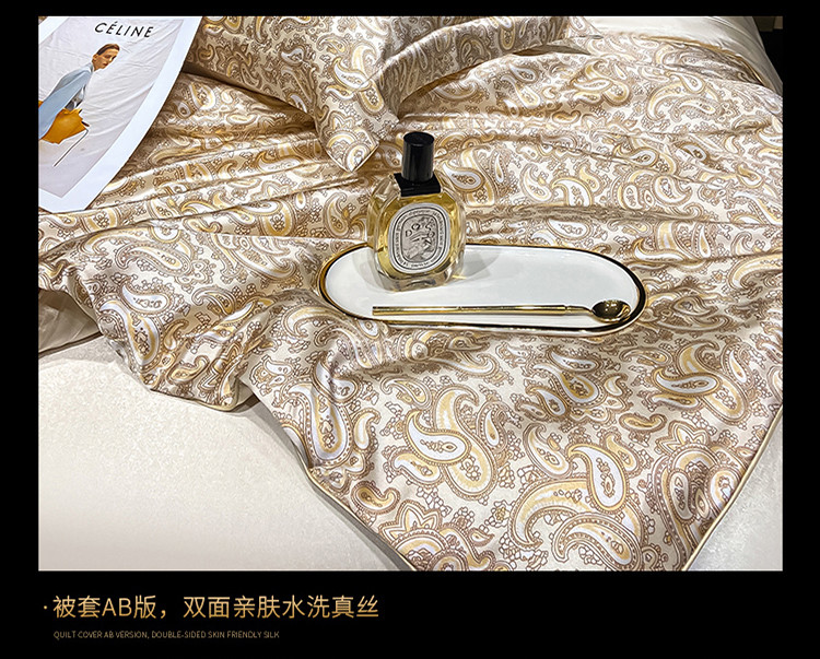黄鹂鸟 2025新款高端轻奢丝滑裸睡丝绸数码印花水洗真丝天丝四件套系列 -风格二 腰果米