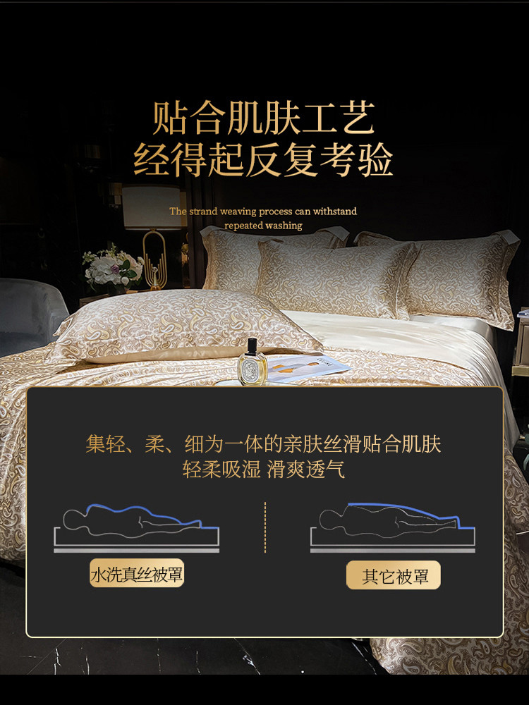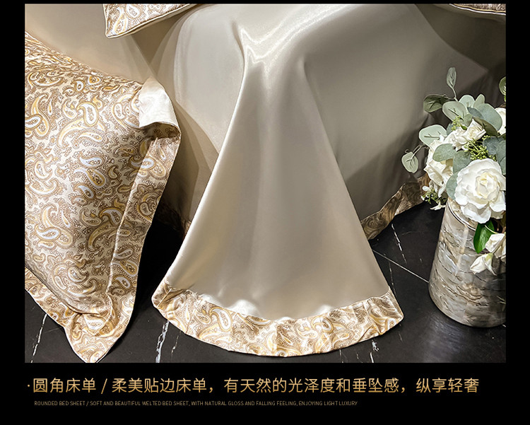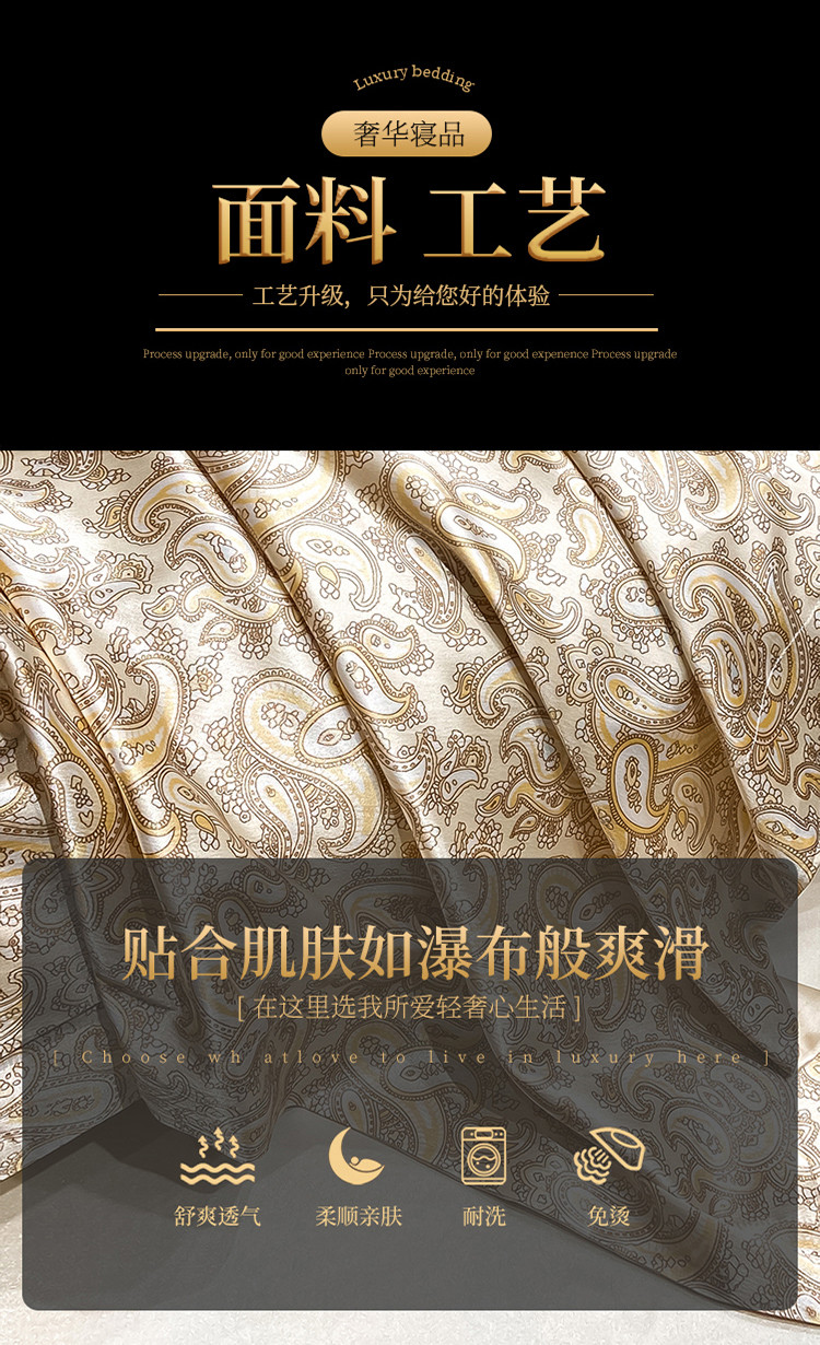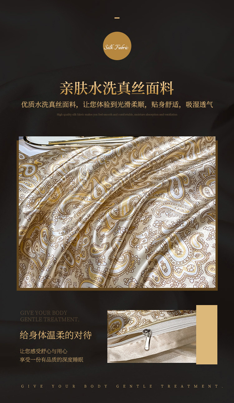 黄鹂鸟 2025新款高端轻奢丝滑裸睡丝绸数码印花水洗真丝天丝四件套系列 -风格二 腰果米
