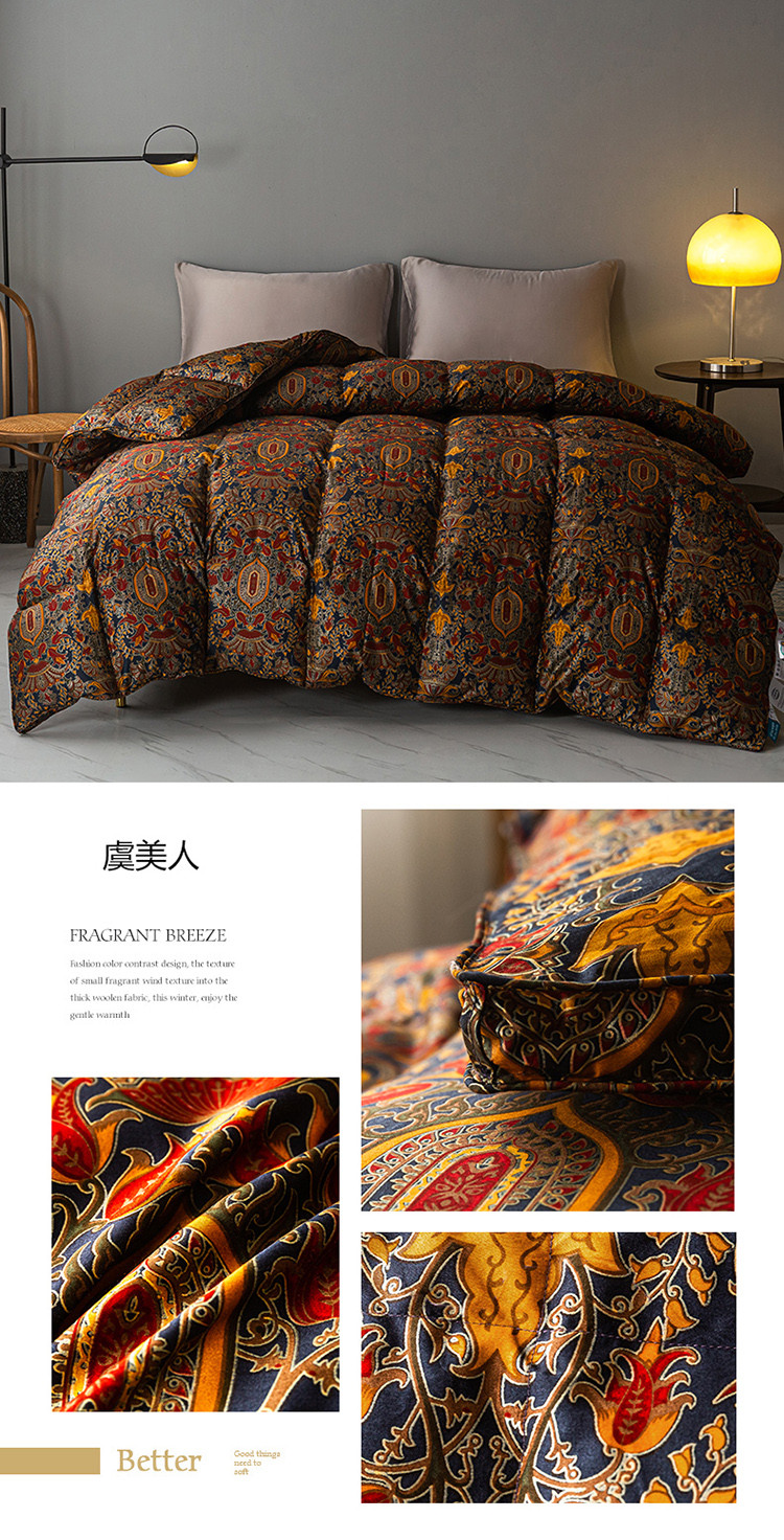 (总)岚司羽 2025新款花好月圆鹅绒被 被子被芯,花好月圆 酒红色,花好月圆 香槟色