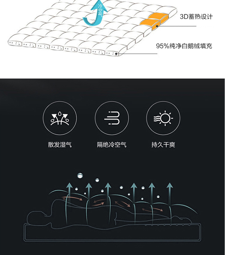 (总)岚司羽 新款全棉双层凌空羽绒丝羽毛床垫加厚床垫,白色,驼色,银灰