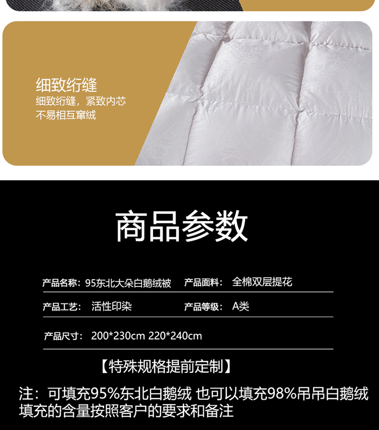 220x240cm(填充国标水洗95%朵朵白鹅绒)
