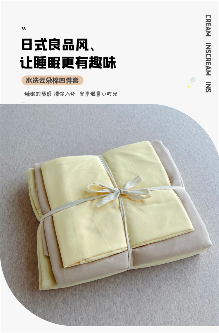 当前位置: 91家纺网 > 商品网购 > 床品套件 > 四件套 > 普通磨毛四件套 > 曼璐105克加厚水洗棉日系无印风纯色被套床单床笠三件套芝士卡其