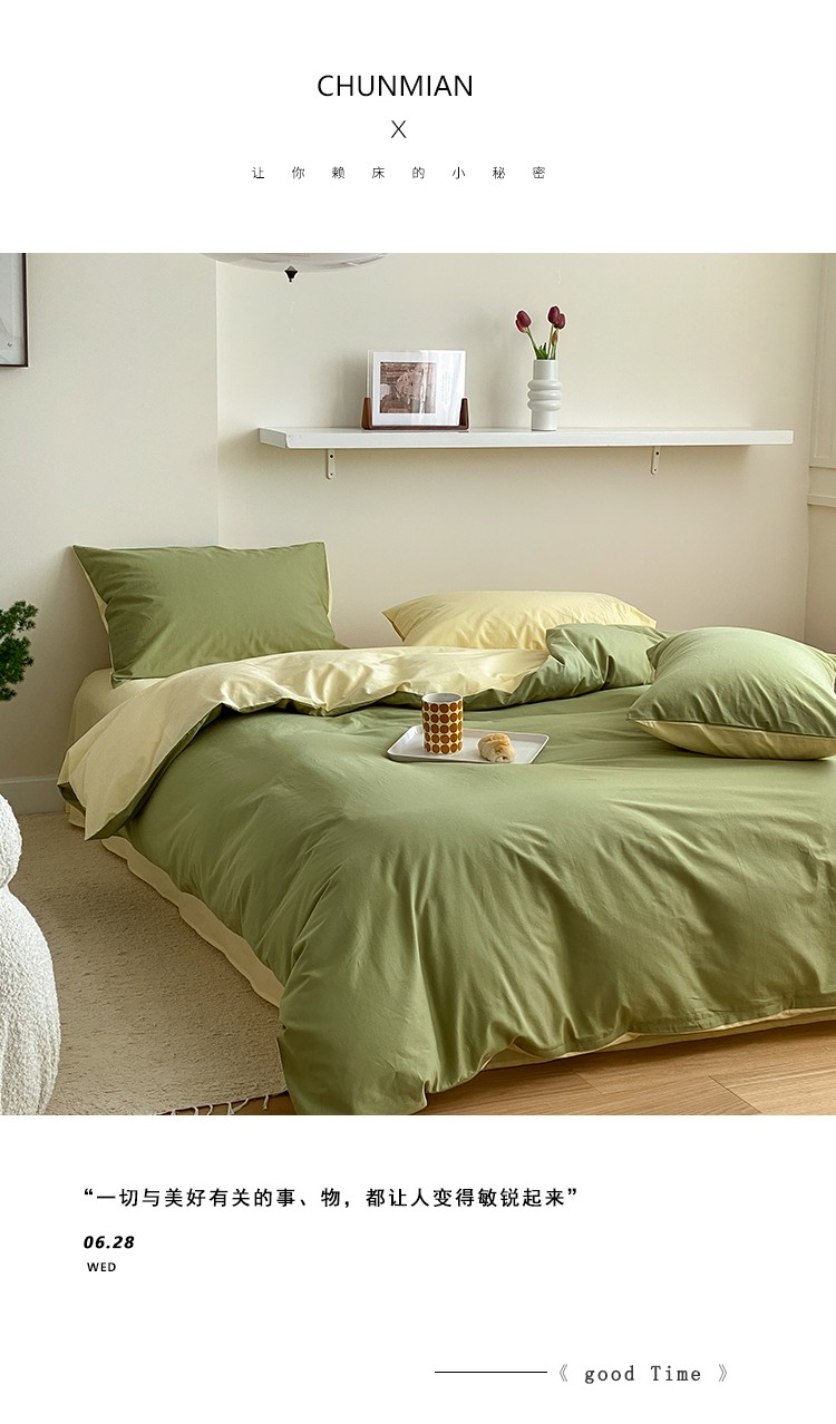 双拼全棉水洗棉纯棉四件套ins简约北欧纯色床笠款套件,双拼白+浅蓝,双拼白+薇薇紫,双拼海蓝+浅蓝,双拼琥珀+鹅黄,双拼焦糖+奶茶,双拼螺旋藻绿+鹅黄,双拼奶茶+鹅黄,双拼牛油果+鹅黄,双拼浅蓝+鹅黄,双拼树莓红+杏仁白,双拼水绿+螺旋藻绿,双拼豌豆青+杏仁白,双拼杏仁白+螺旋藻绿,薇薇紫+杏仁白,浅灰+杏仁白,双拼藏青+浅灰,双拼花青灰+浅灰,双拼霁色+浅灰