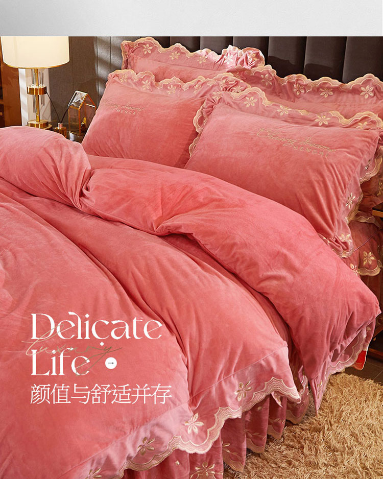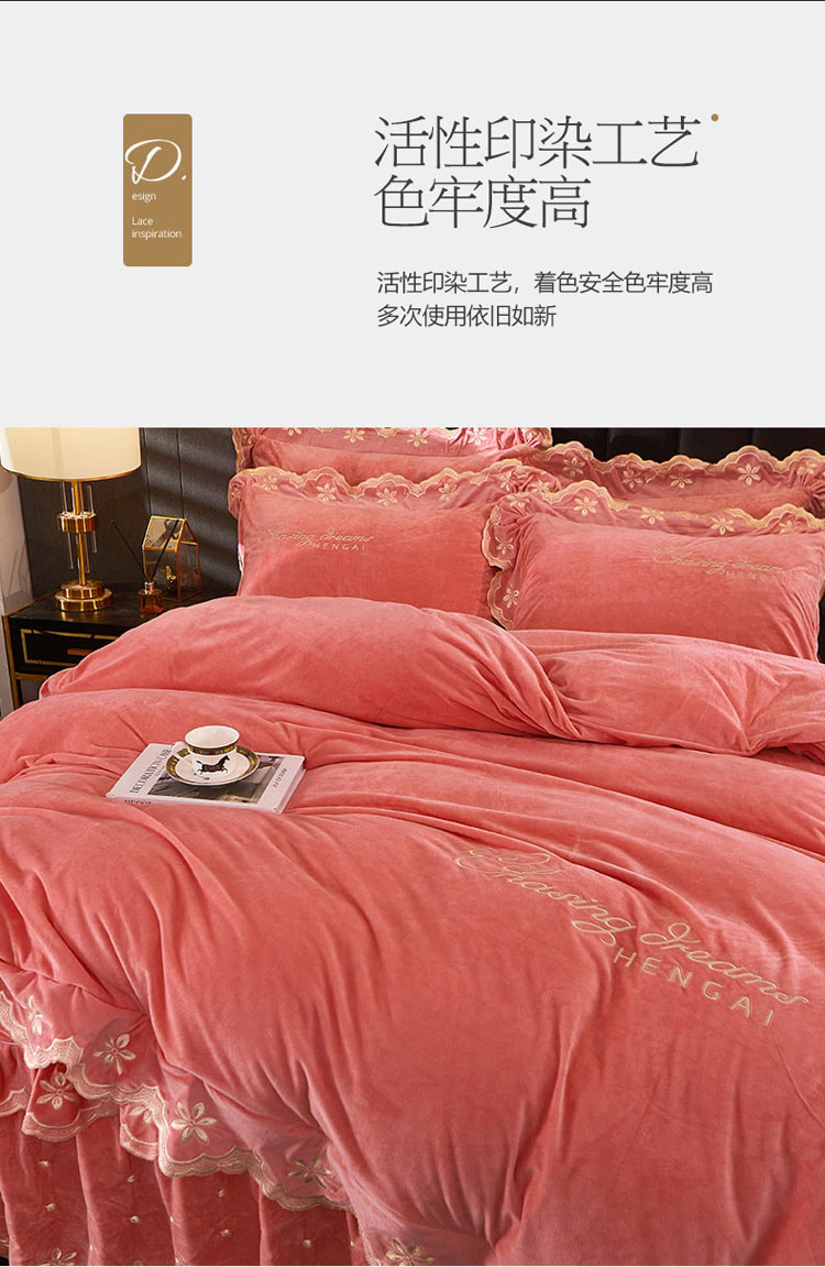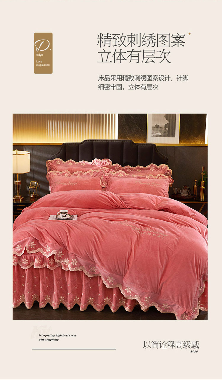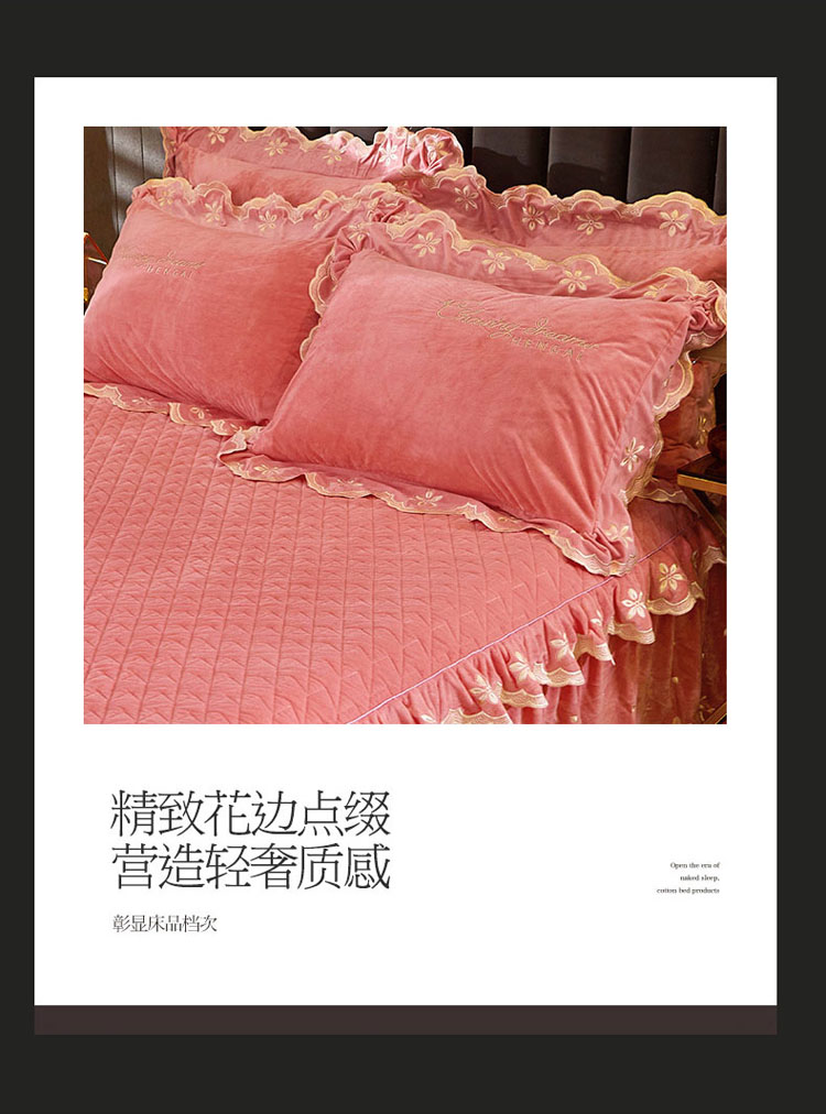 当前位置: 91家纺网 > 商品网购 > 床品套件 > 四件套 > 宝宝绒四件套 > 恒爱 2022新款秋冬轻奢宝宝绒刺绣床裙款四件套 梦想粉