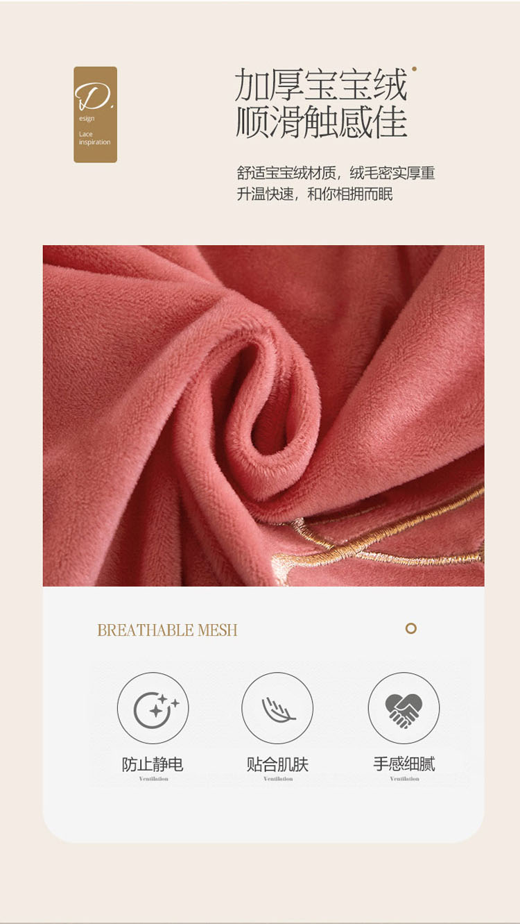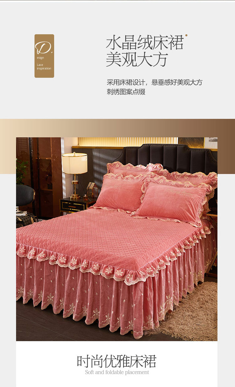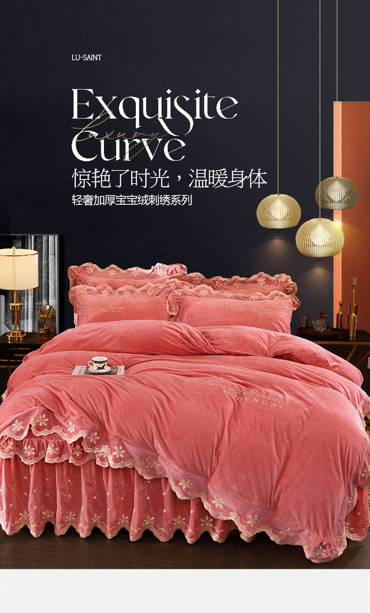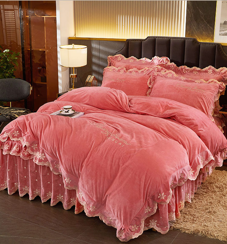 当前位置: 91家纺网 > 商品网购 > 床品套件 > 四件套 > 宝宝绒四件套 > 恒爱 2022新款秋冬轻奢宝宝绒刺绣床裙款四件套 梦想粉