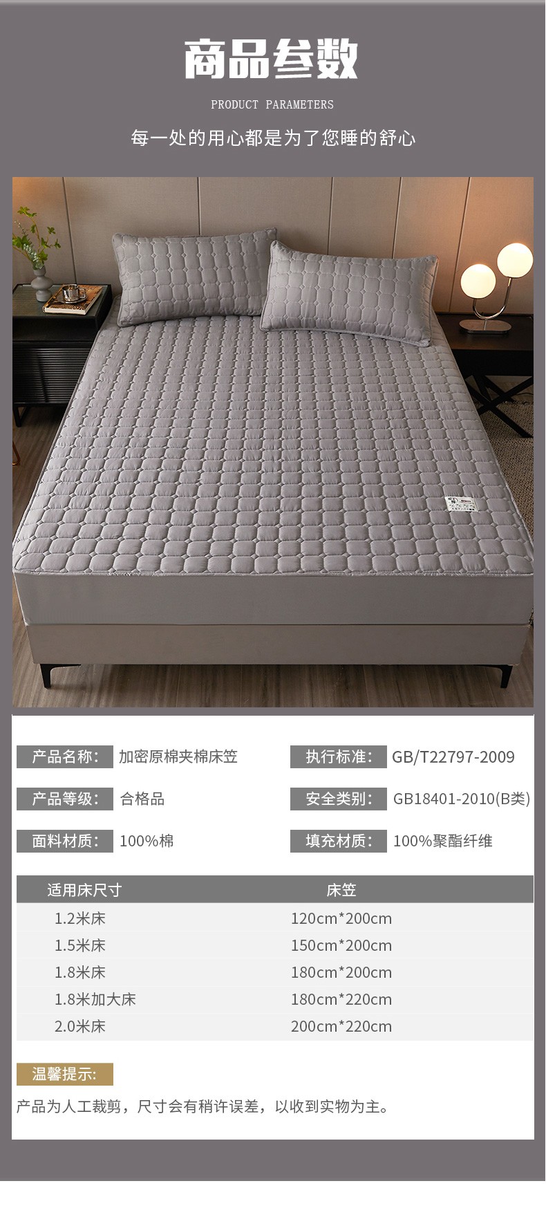 当前位置: 91家纺网 > 商品网购 > 床品套件 > 三件套 > 初心家纺 2022新款A类加密原棉夹棉床笠单品及三件套 高雅灰
