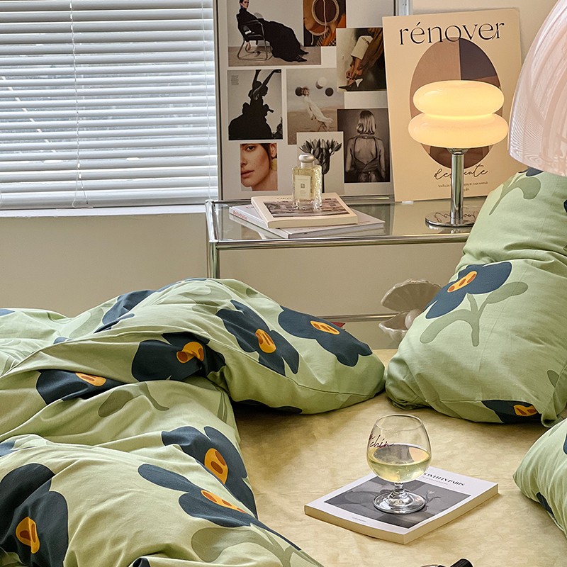 昔可家纺 2022新款法式田园花卉系列全棉四件套 森绿湖畔