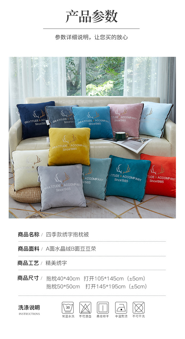 商品名称:(总)翰轩家居 2022新款水晶绒绣花抱枕被系列-祥禄