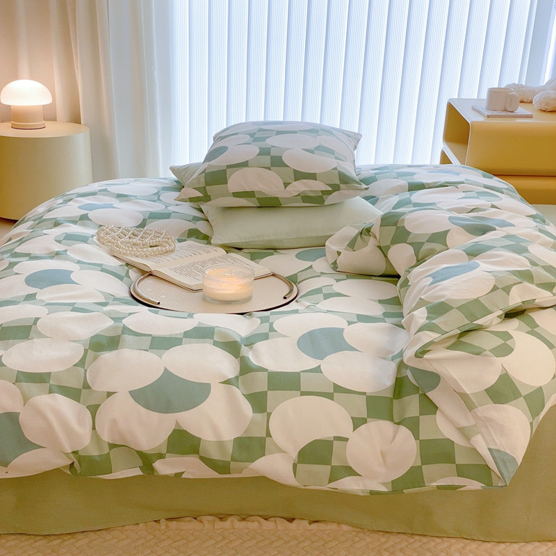 (总)昔可 2023新款全棉ins格子混搭系列四件套,ins简约绿格,粉蓝格,开心果格,学院格纹,粉绿格,海盐兰格,黄绿格,夏日蓝条,芝士黄条,紫芋泥芝士格