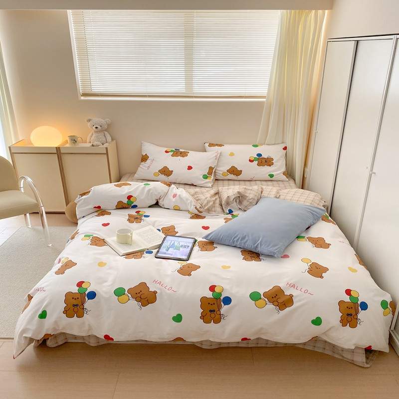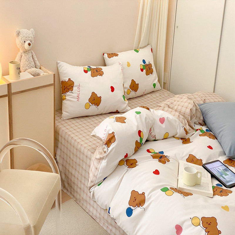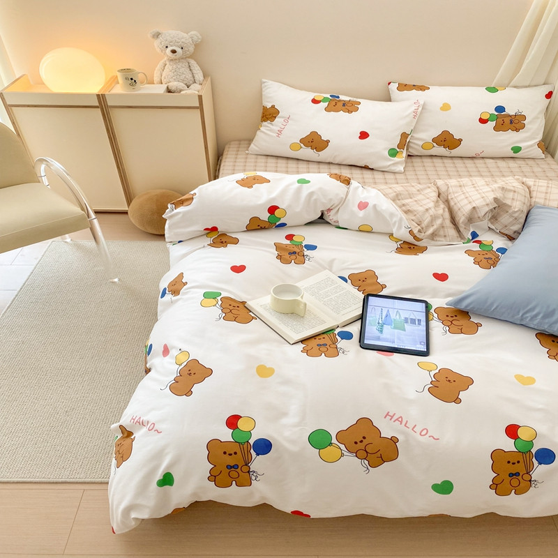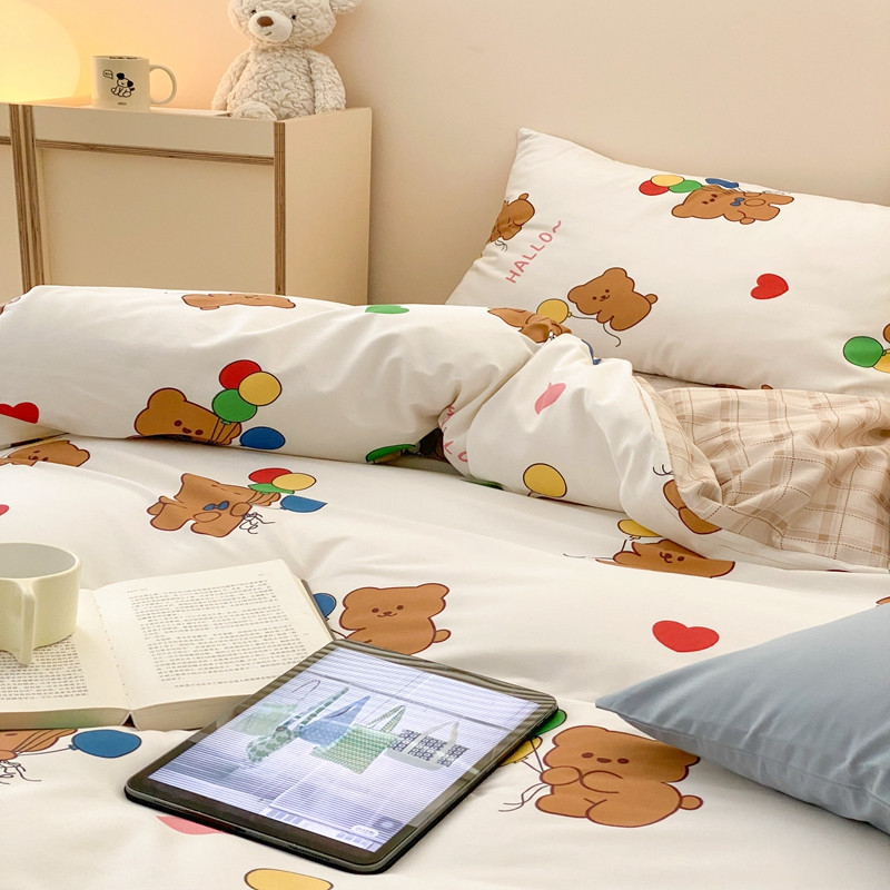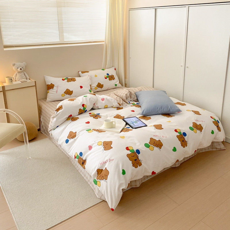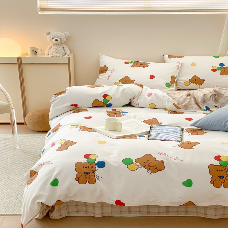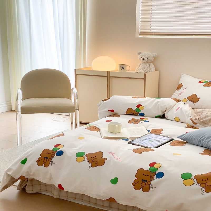 昔可 2022新款全棉四件套影棚图1 气球小熊