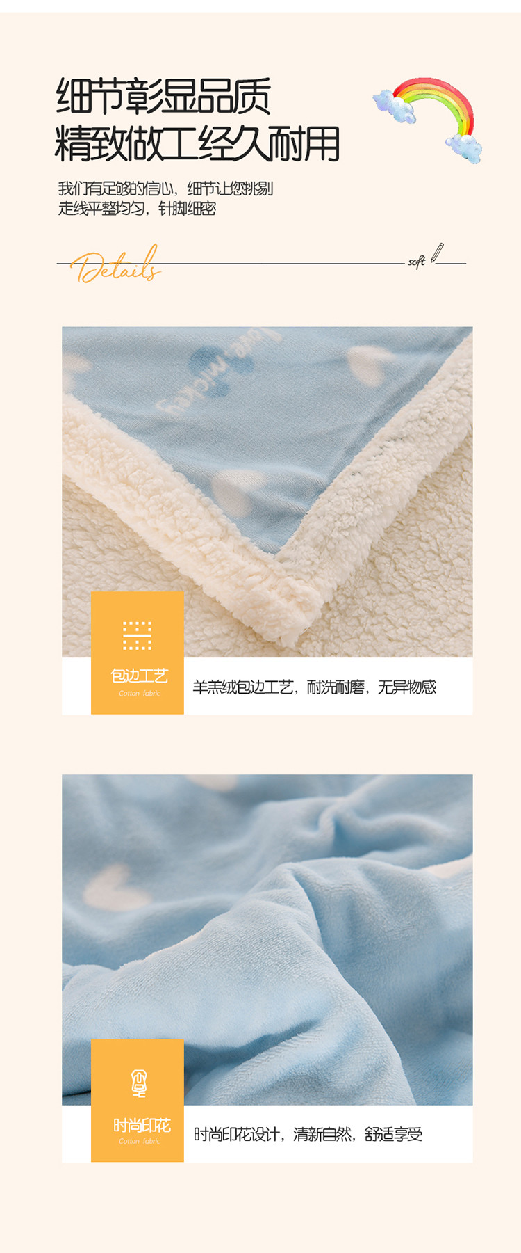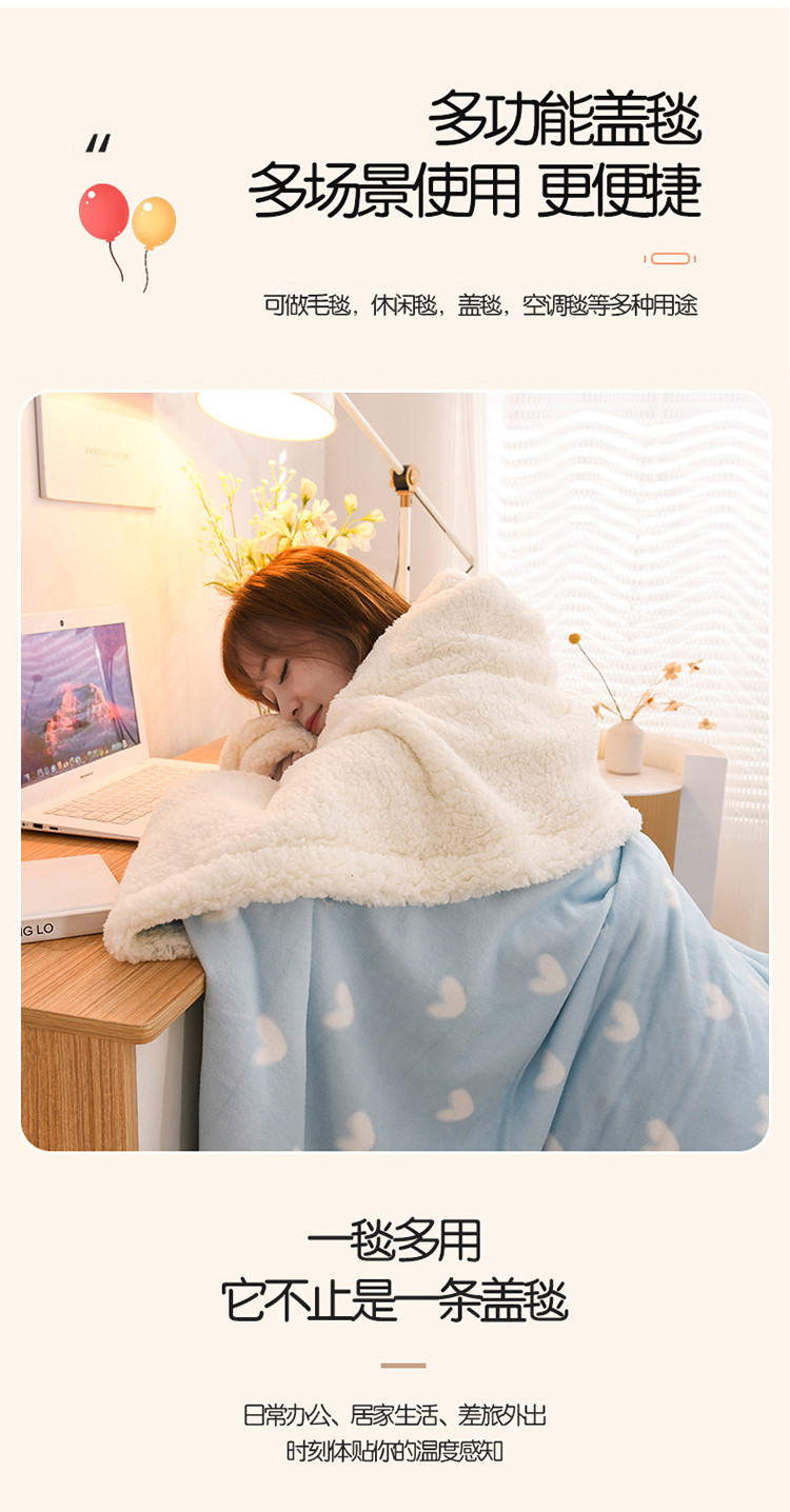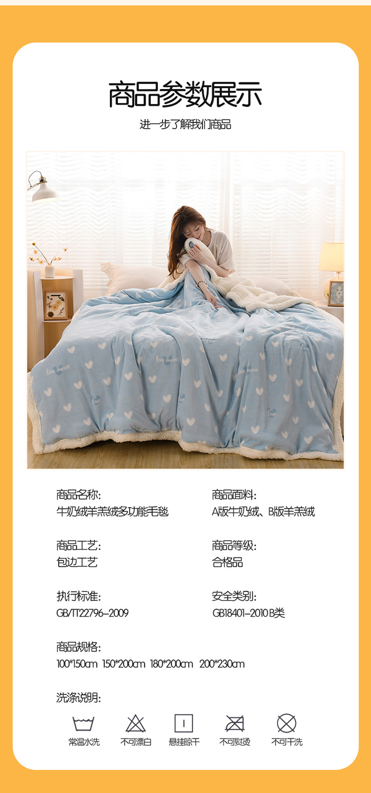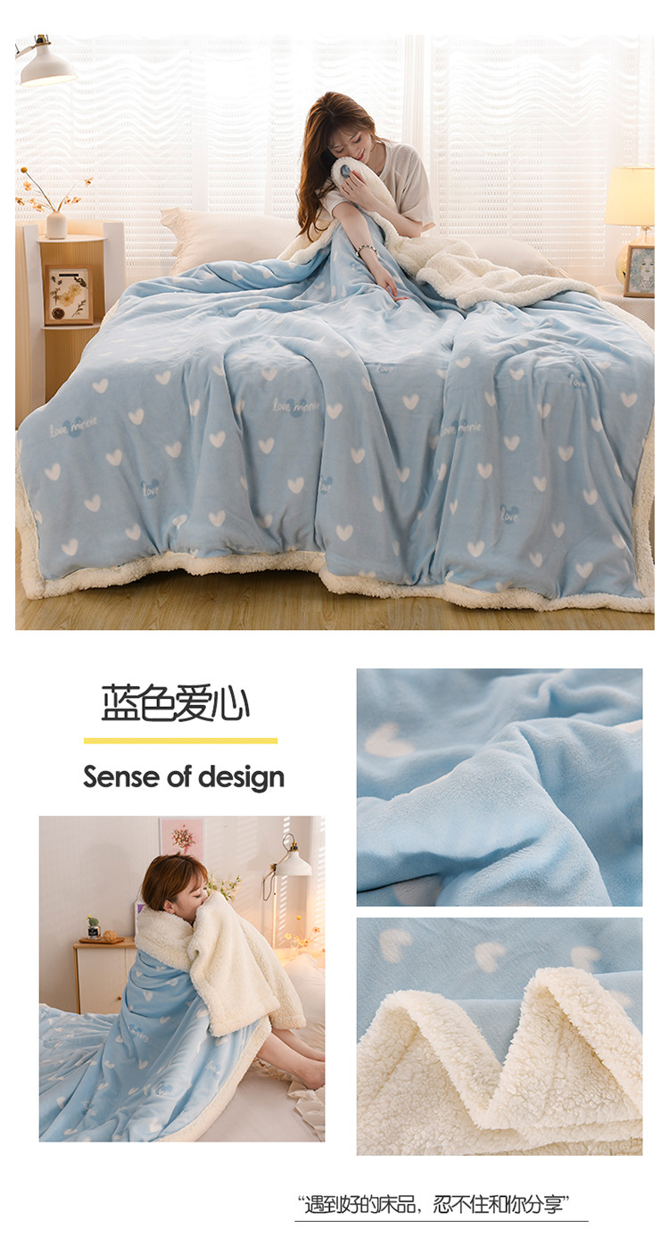 商品名称:蓝邻家纺 2023新款A版牛奶绒+b版羊羔绒毛毯 蓝色爱心