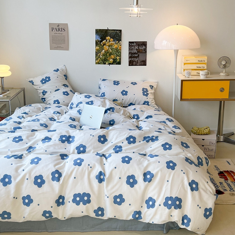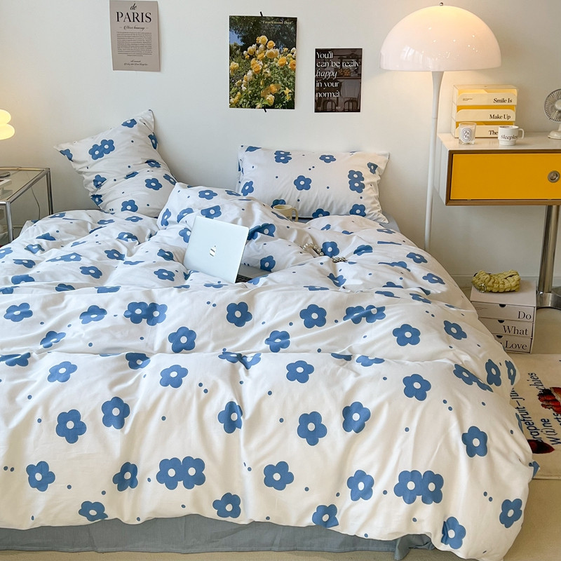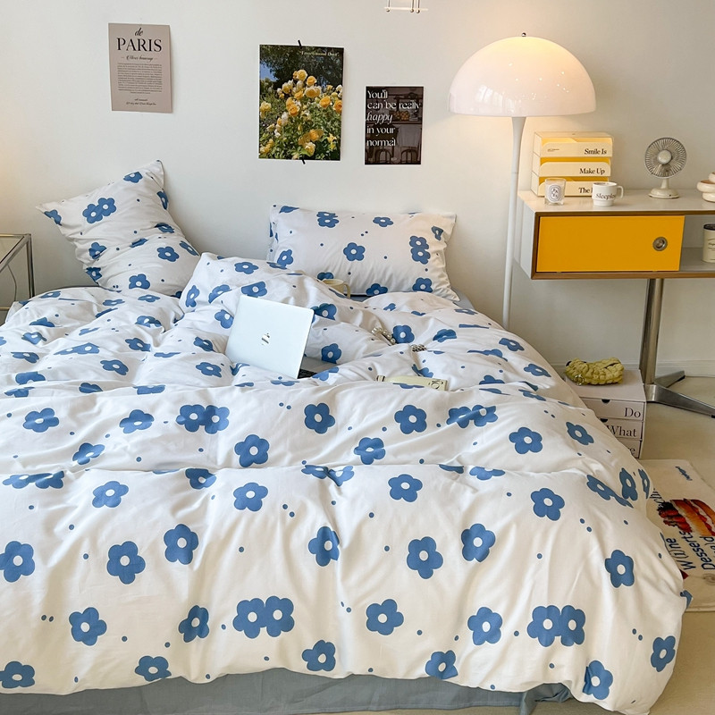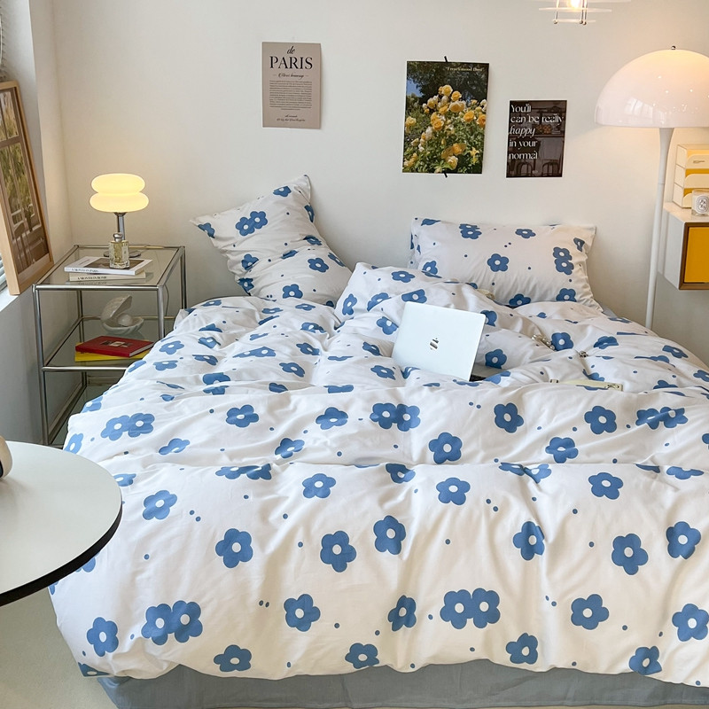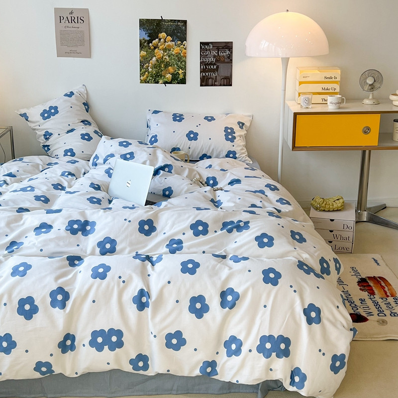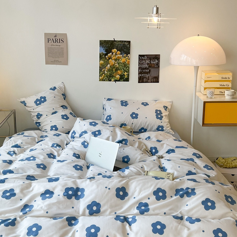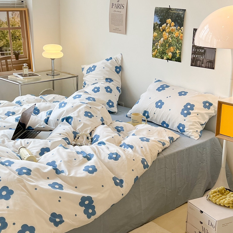 昔可 2022新款简约花朵四件套 蓝蓝小花