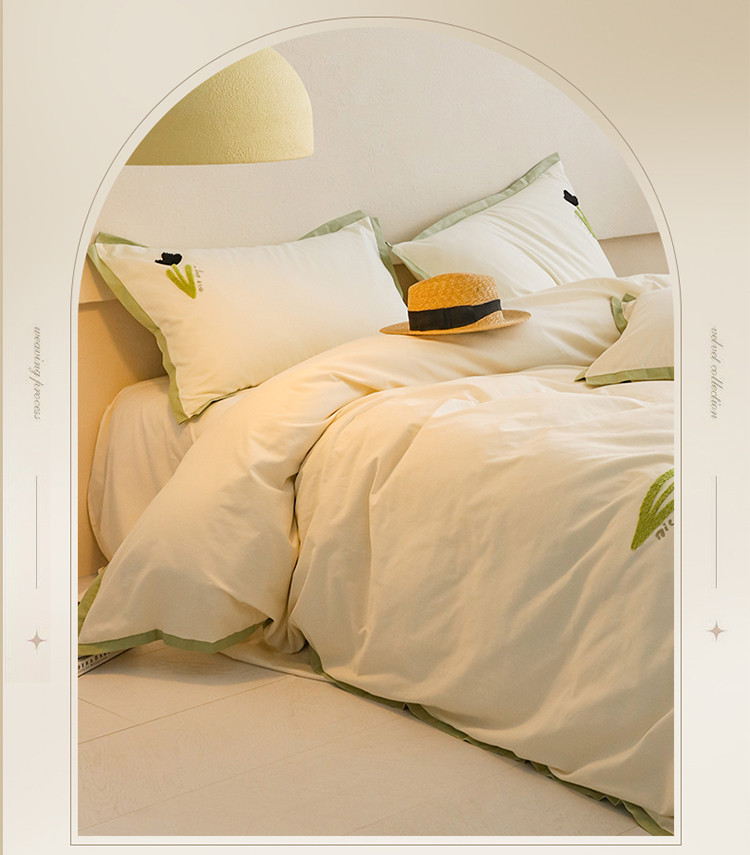 (总)名品优仓2023款水洗棉三层纱提花四件套-狡花系列,狡花白,狡花豆粉,狡花黄,狡花蓝色,狡花绿,狡花少女粉